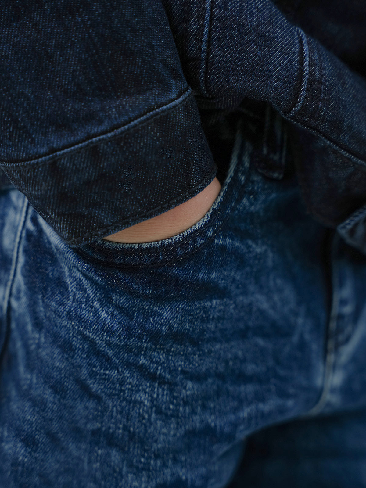 Composition & Care '100% Denim Machine wash up to 30°C/86°F gentle cycle Iron up to 110°C/230°F Do not tumble dry Do not bleach Do not dry clean'