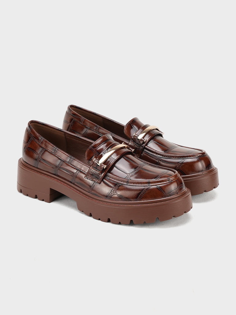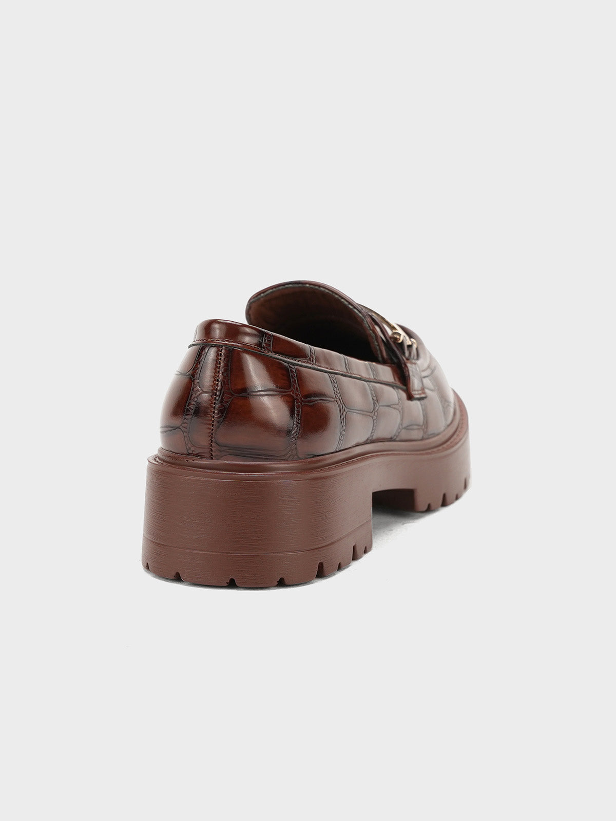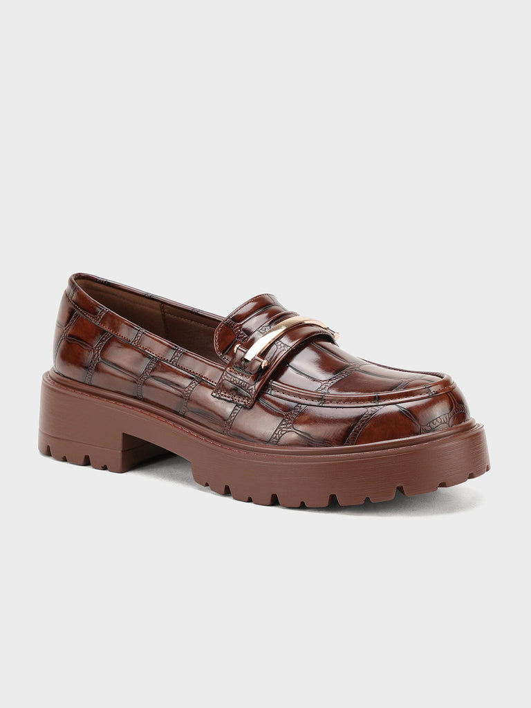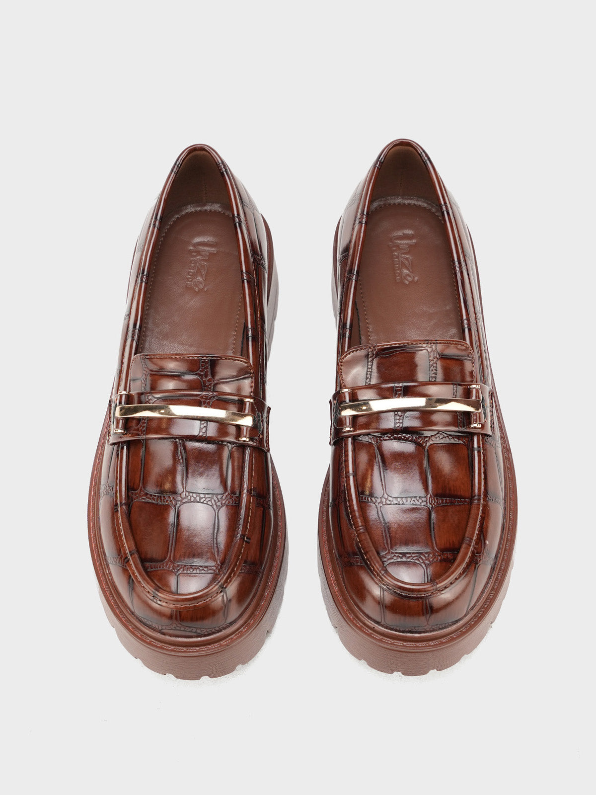 These classy moccasins feature a chic croc-textured finish with a shiny gold buckle detail. Designed for both comfort and style, they are perfect for work or casual wear. The slip-on design makes them easy to wear, while the soft sole ensures all-day comfort.