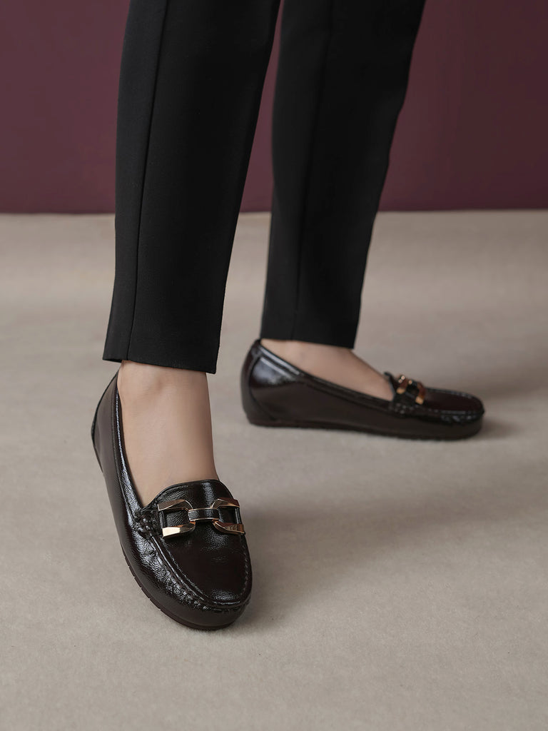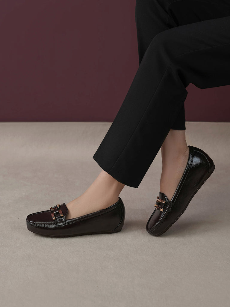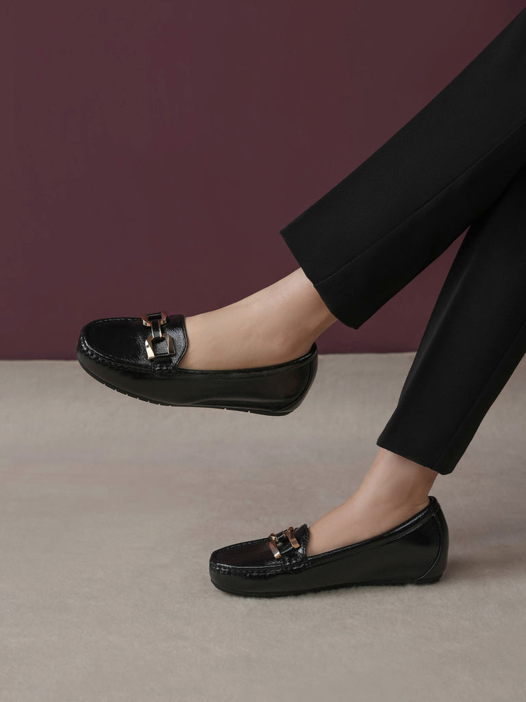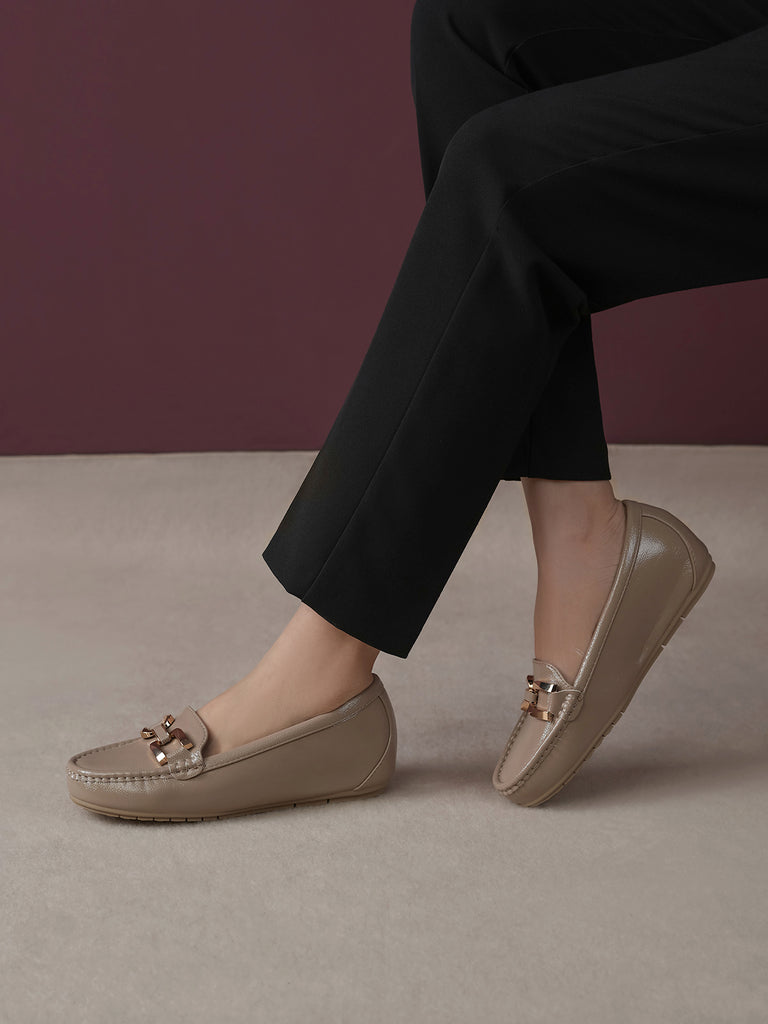These moccasins feature a medium heel for just the right lift and a classy buckle detail on top. Designed for everyday comfort with a modern touch, they are perfect for work, casual outings, or stylish daily wear. Easy to slip on and always in style.