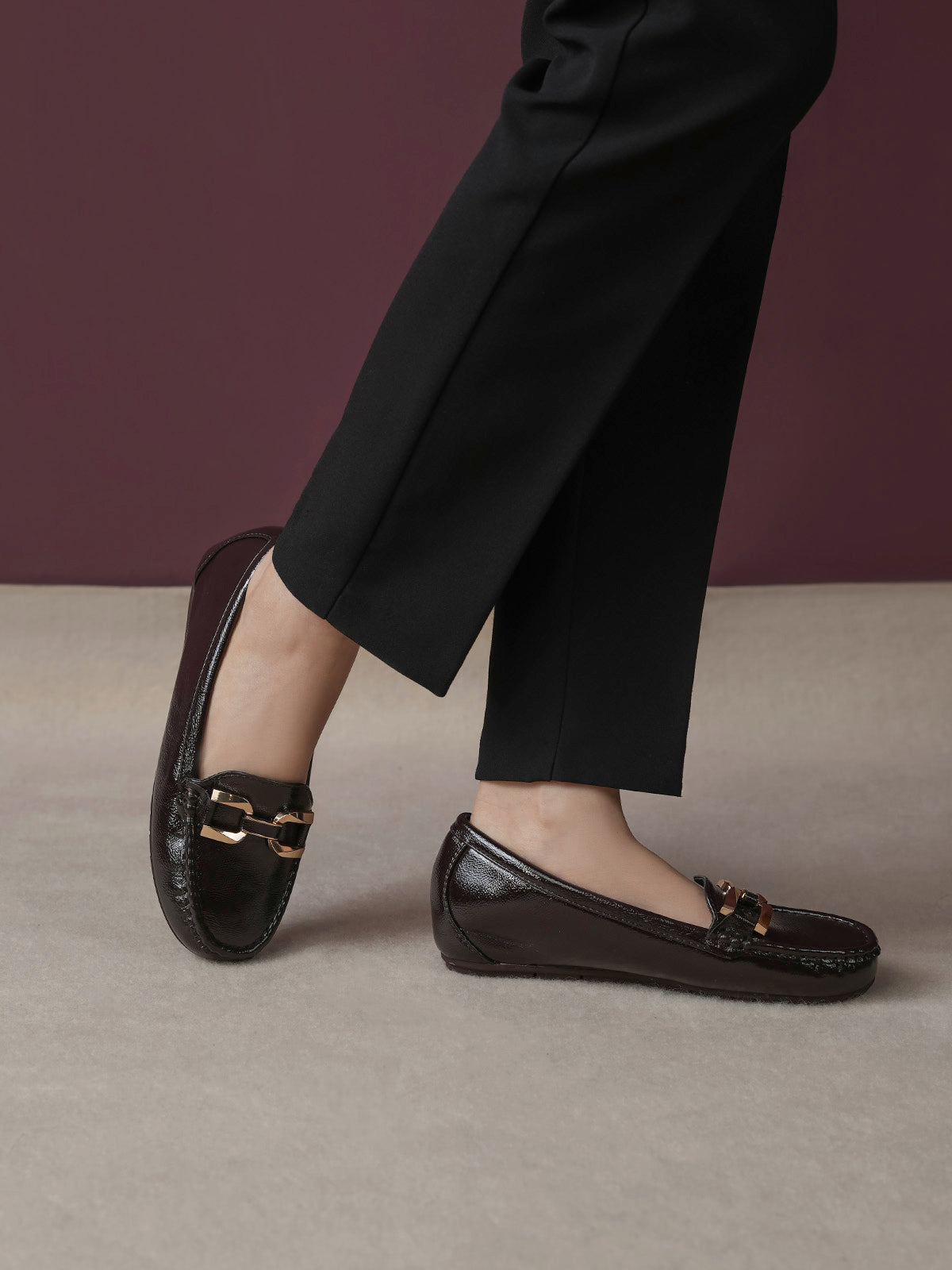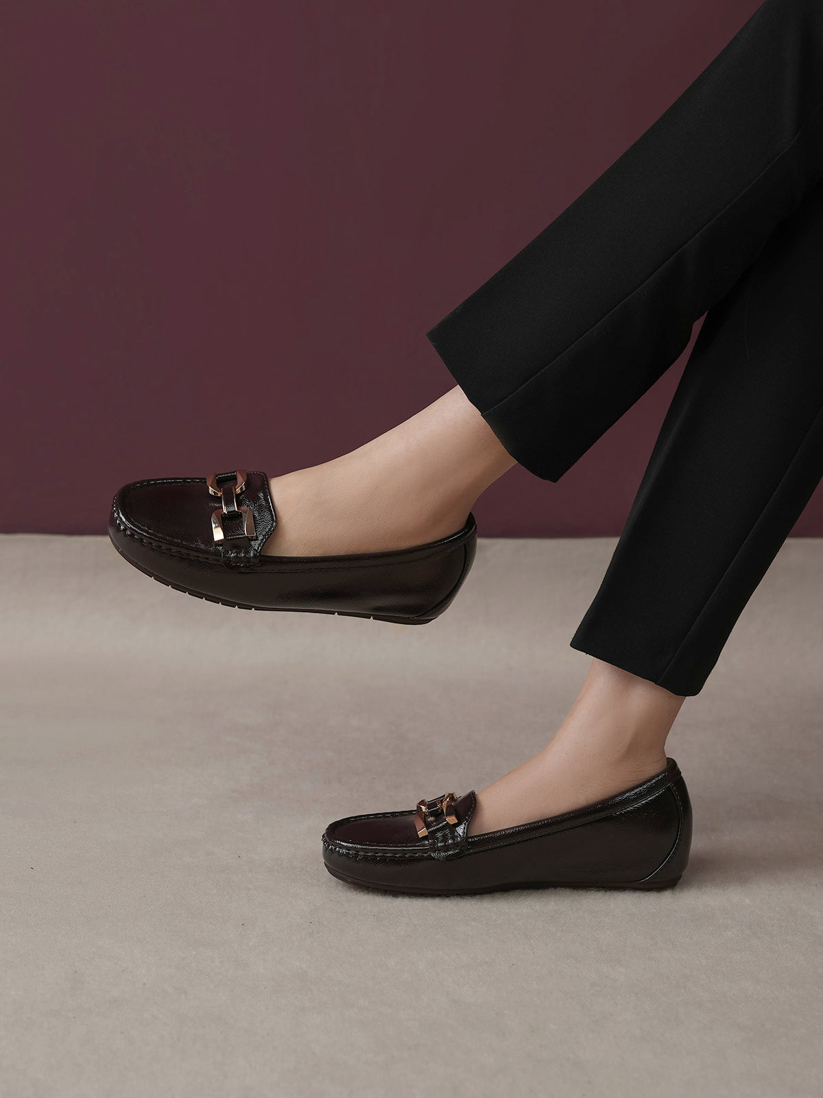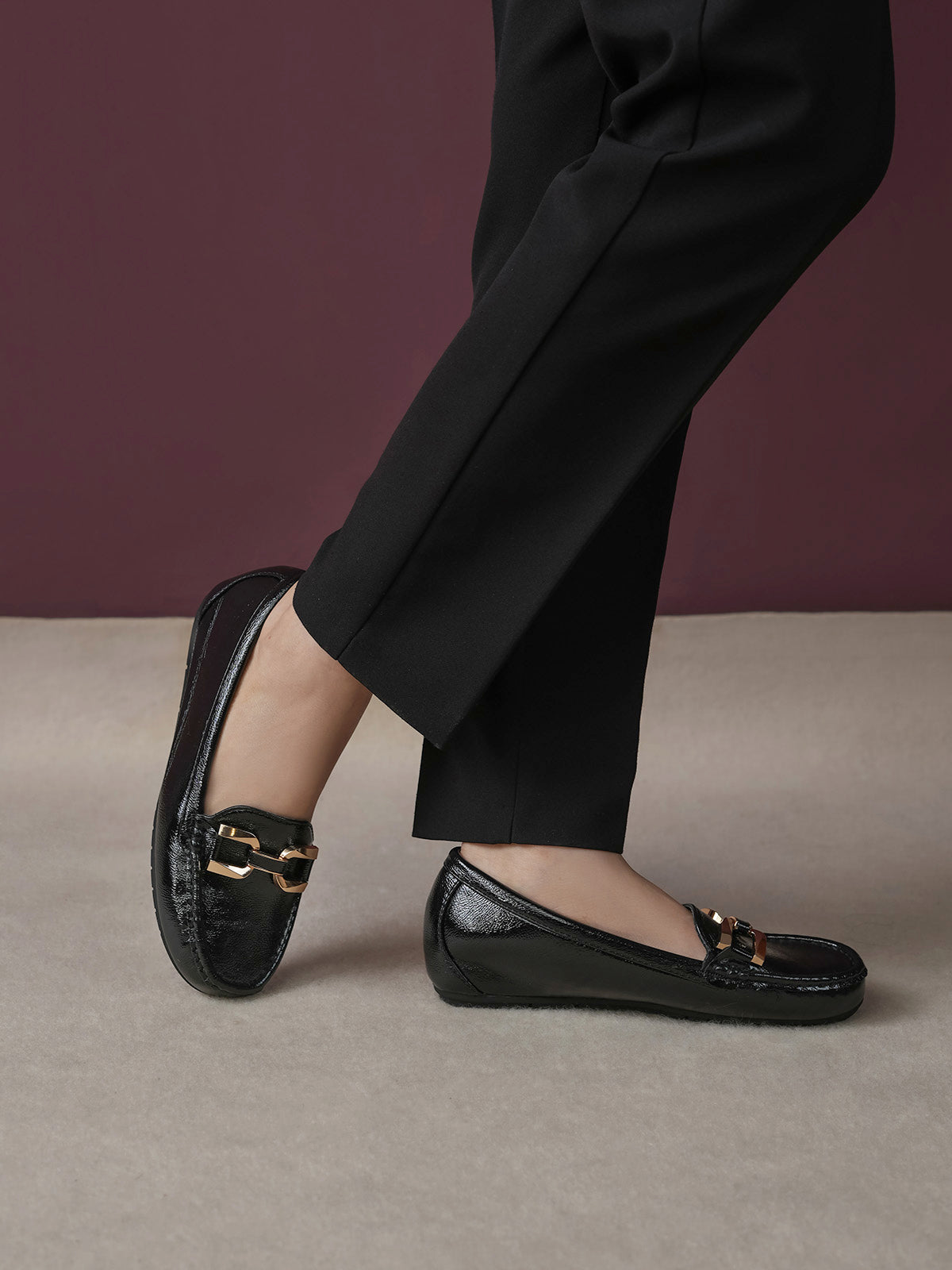 These moccasins feature a medium heel for just the right lift and a classy buckle detail on top. Designed for everyday comfort with a modern touch, they are perfect for work, casual outings, or stylish daily wear. Easy to slip on and always in style.