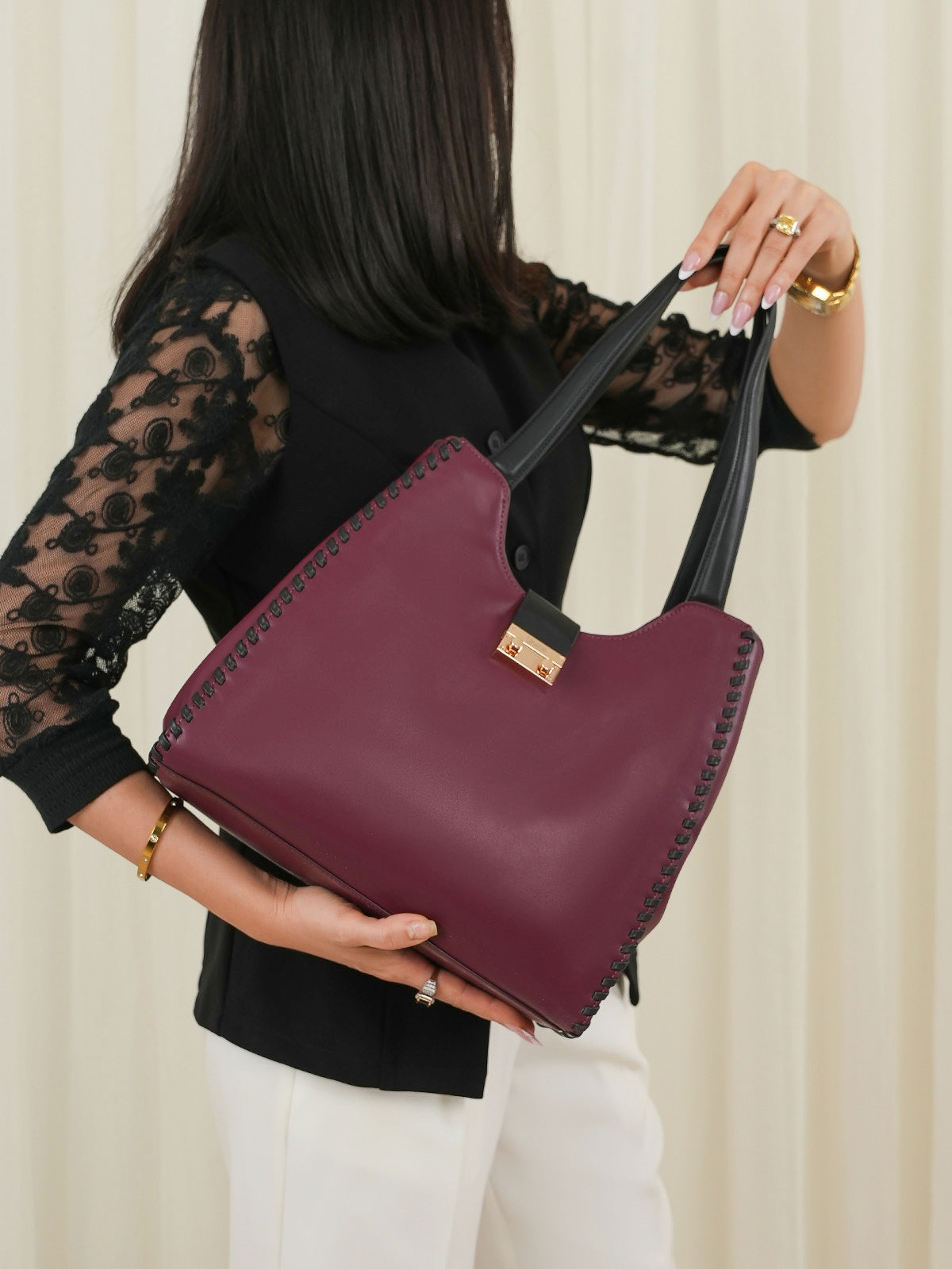 This women’s handbag is stylish, light, and easy to use. With enough space for your daily items, it’s perfect for everyday wear and matches well with any outfit.