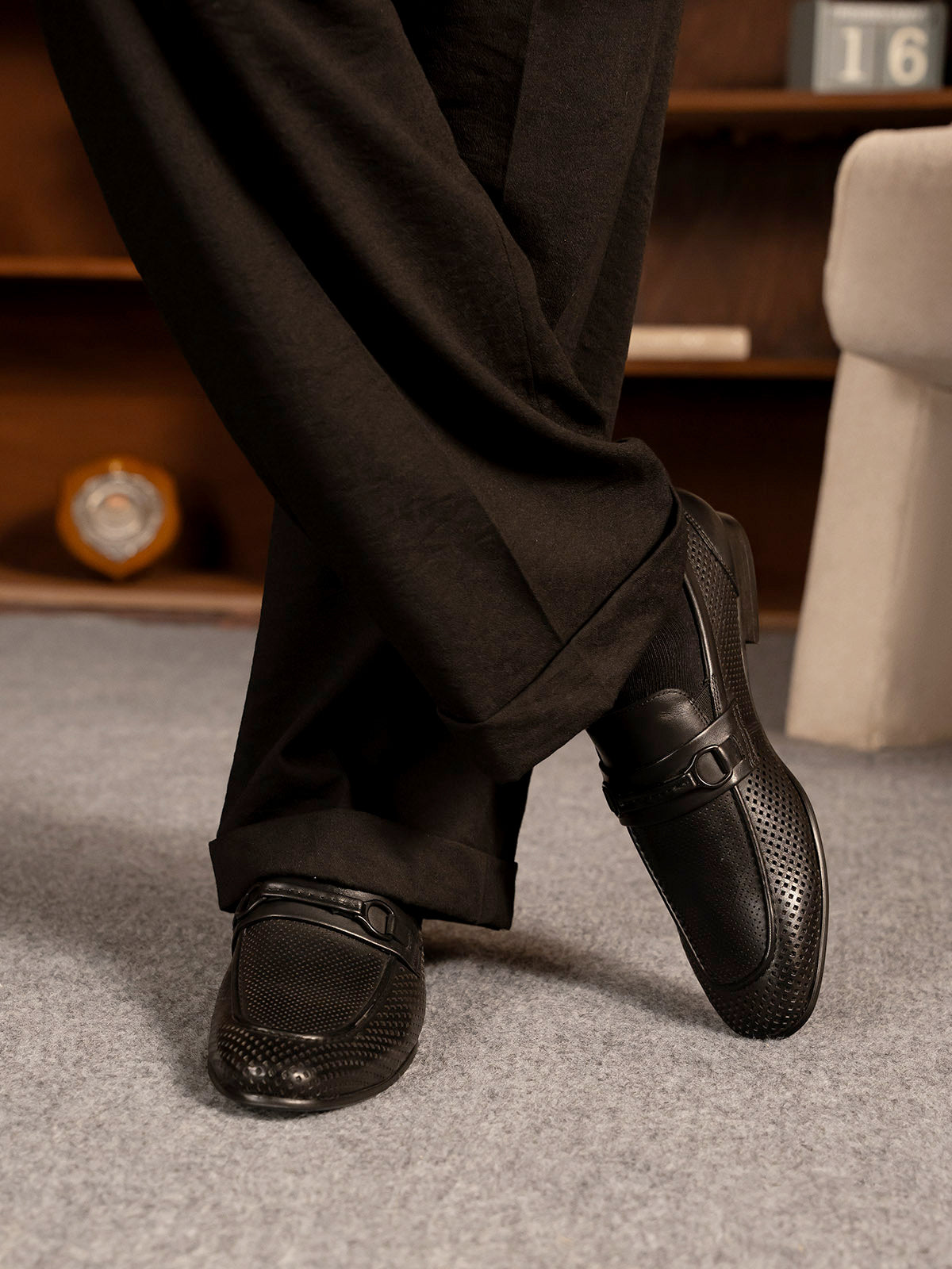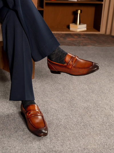 Enhance your formal look with these uniquely styled men’s leather slip-on shoes. Crafted from high-quality leather, they feature a modern design that adds a refined touch to any formal outfit. The slip-on construction offers easy wear.