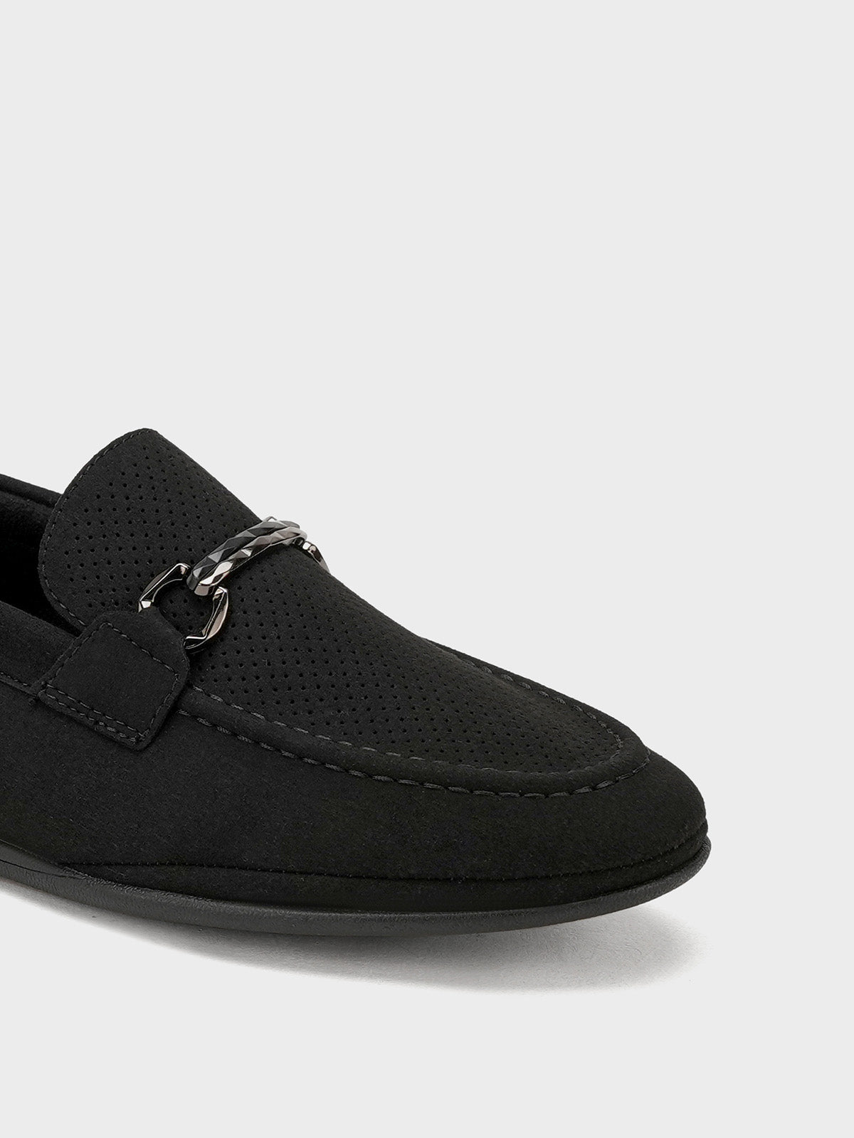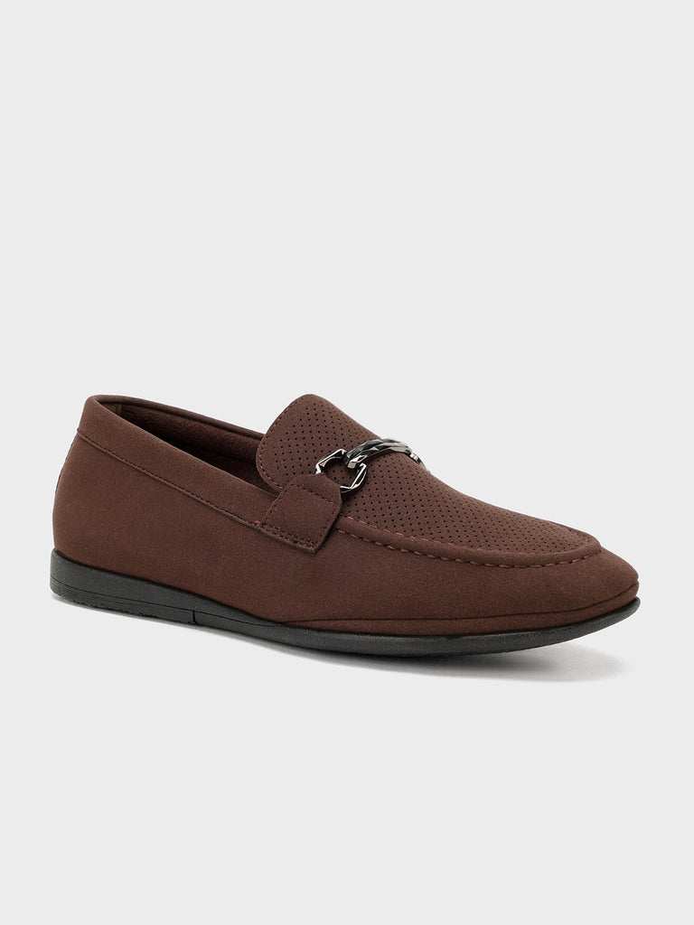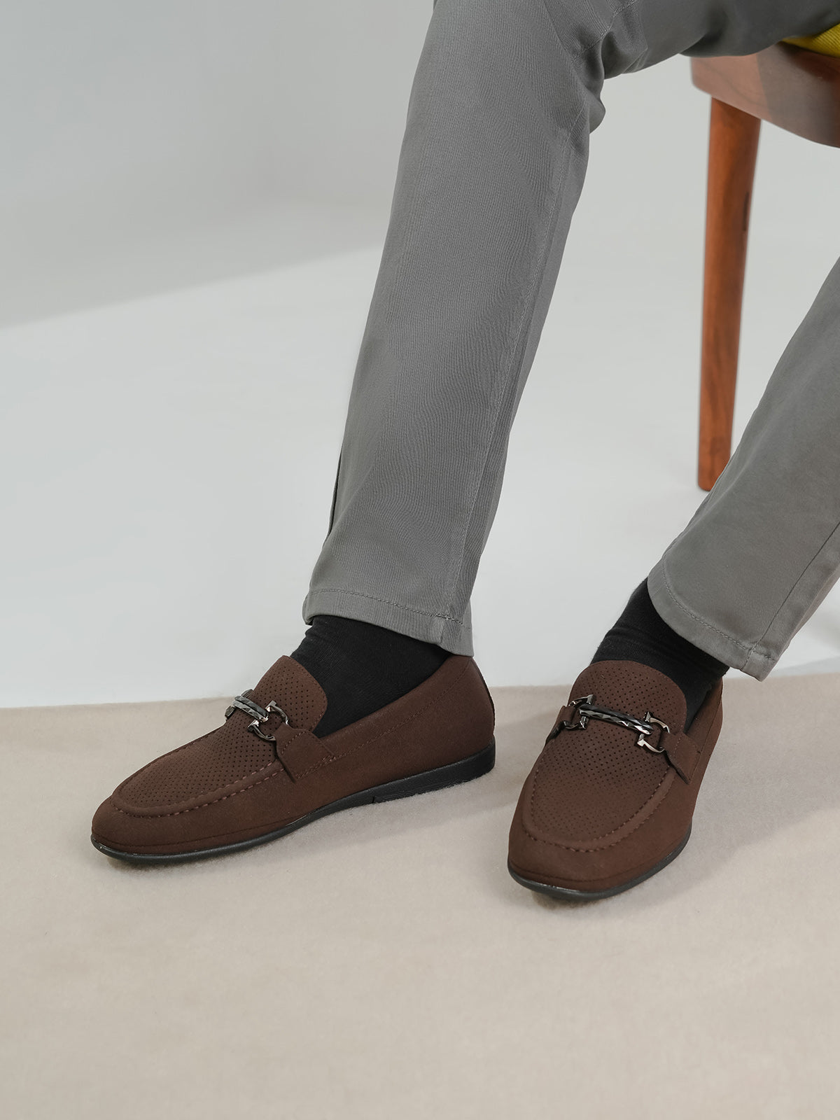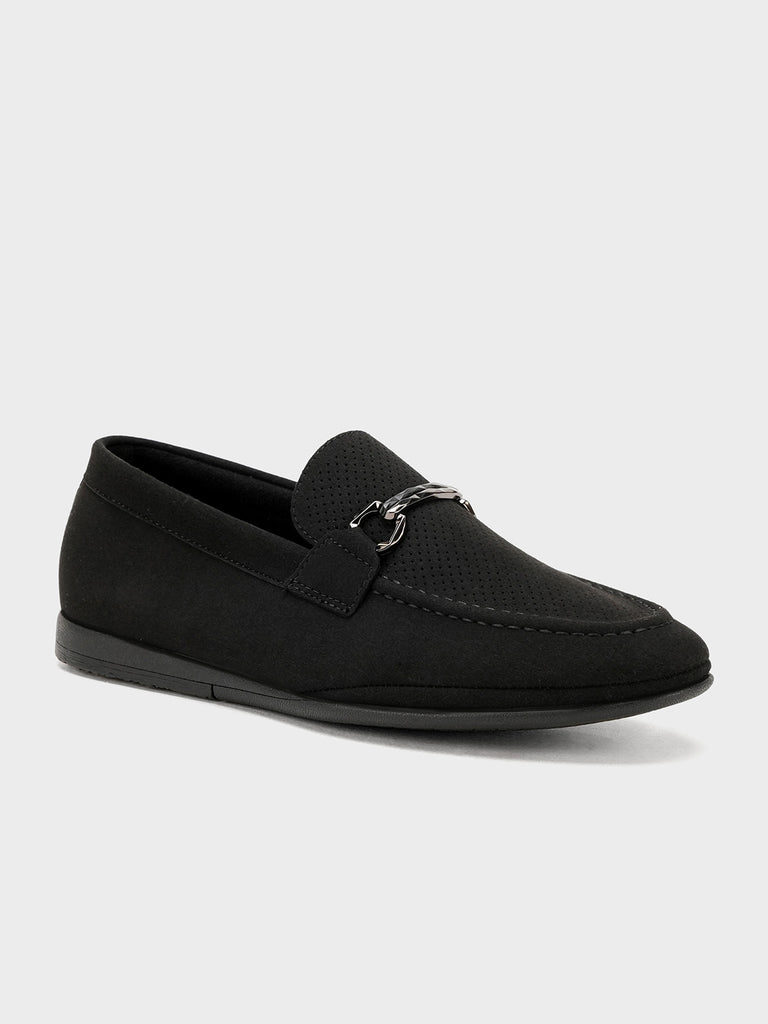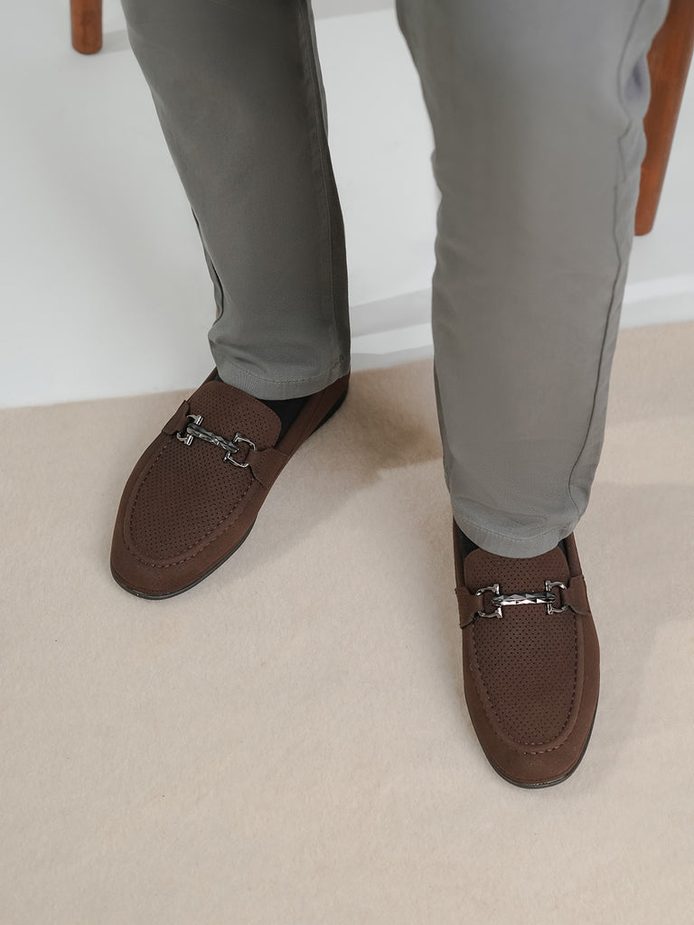 Add timeless charm to your look with these men’s loafers featuring a sleek metal buckle detail. Crafted from soft, durable material with a perforated upper for breathability, these loafers offer both comfort and style.