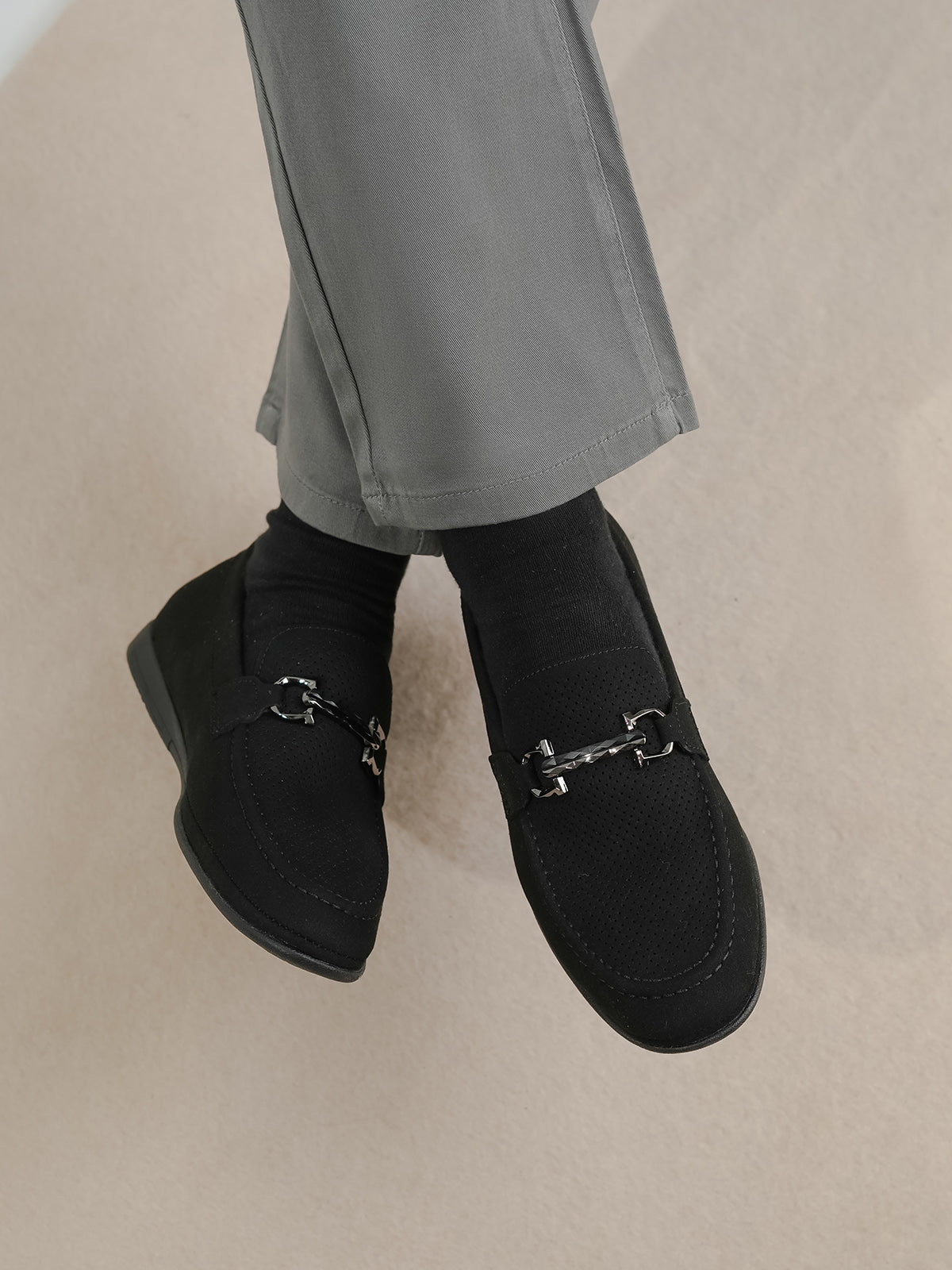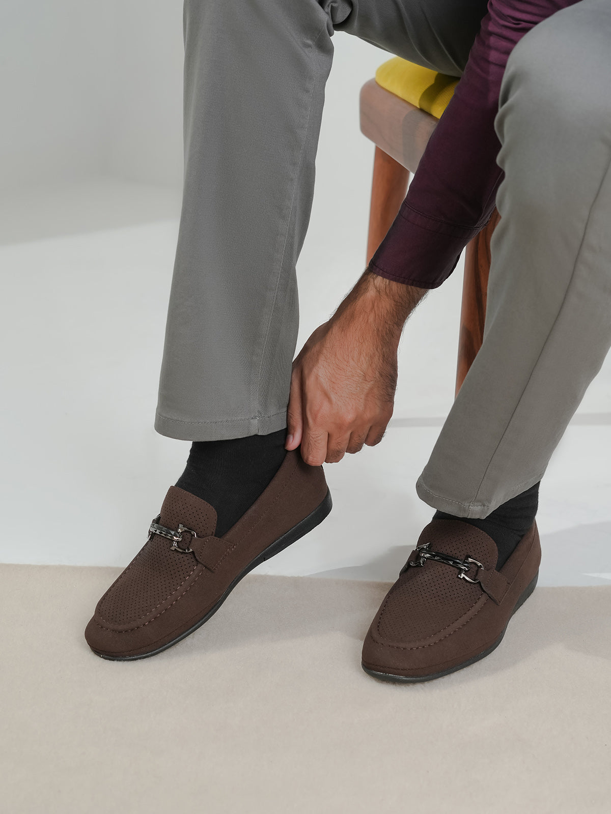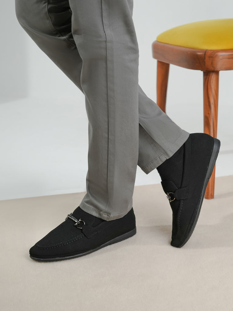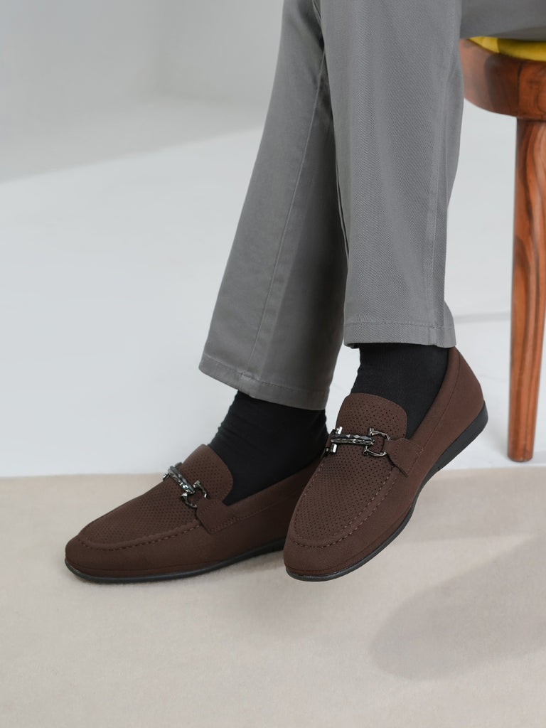 Add timeless charm to your look with these men’s loafers featuring a sleek metal buckle detail. Crafted from soft, durable material with a perforated upper for breathability, these loafers offer both comfort and style.