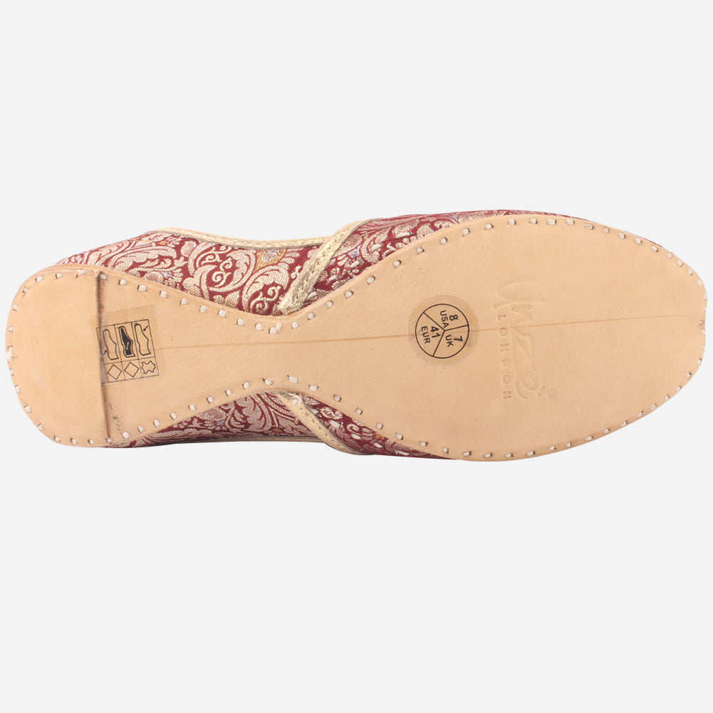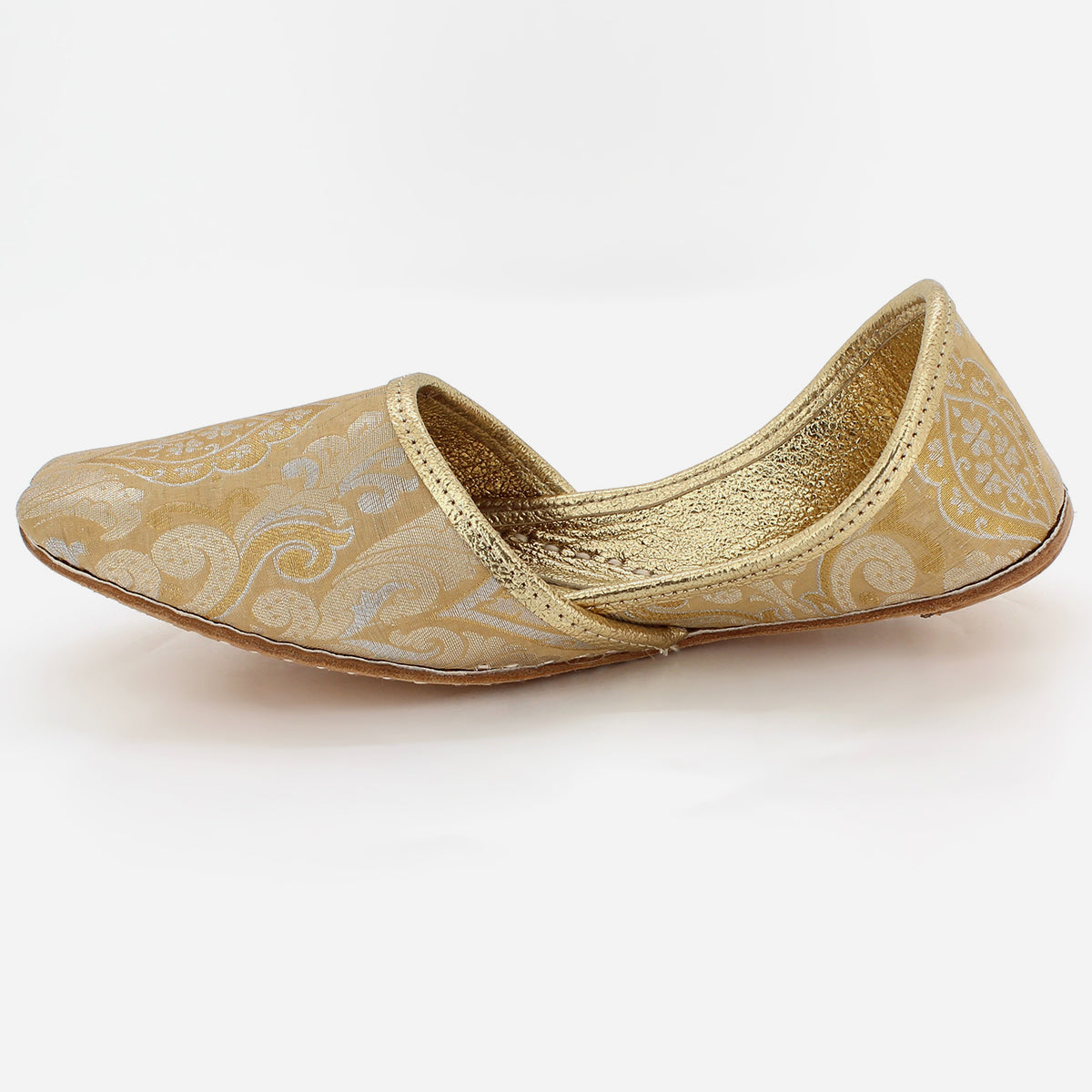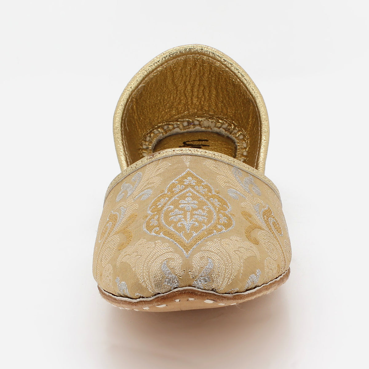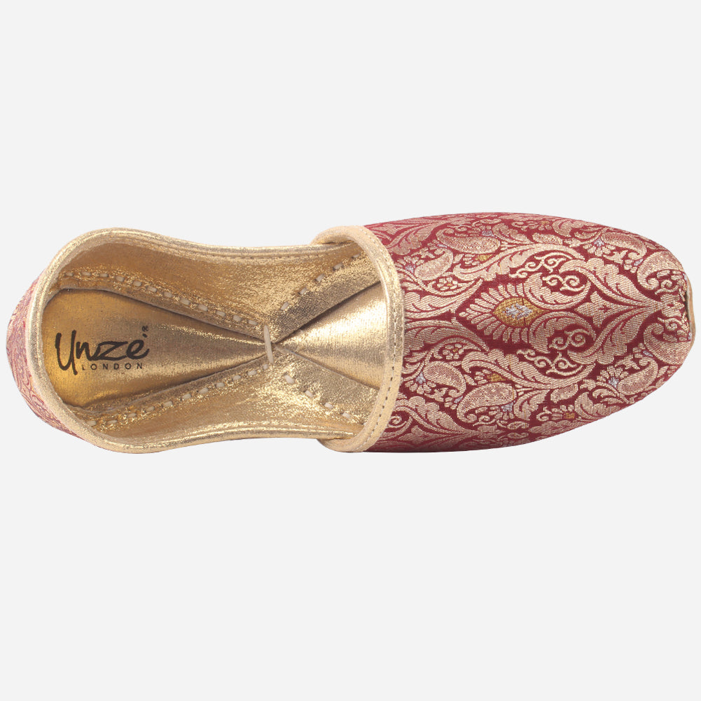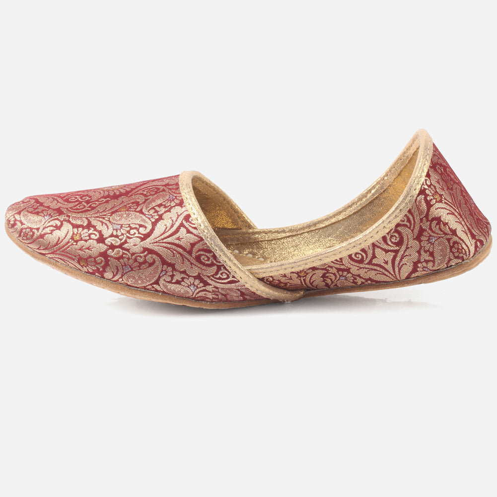 These men’s Jamawar shoes are traditional slip on Indian wedding shoes. These are soft and comfortable padded inside featuring with sparkly upper; goes perfect with ethnic dress on his big day.
