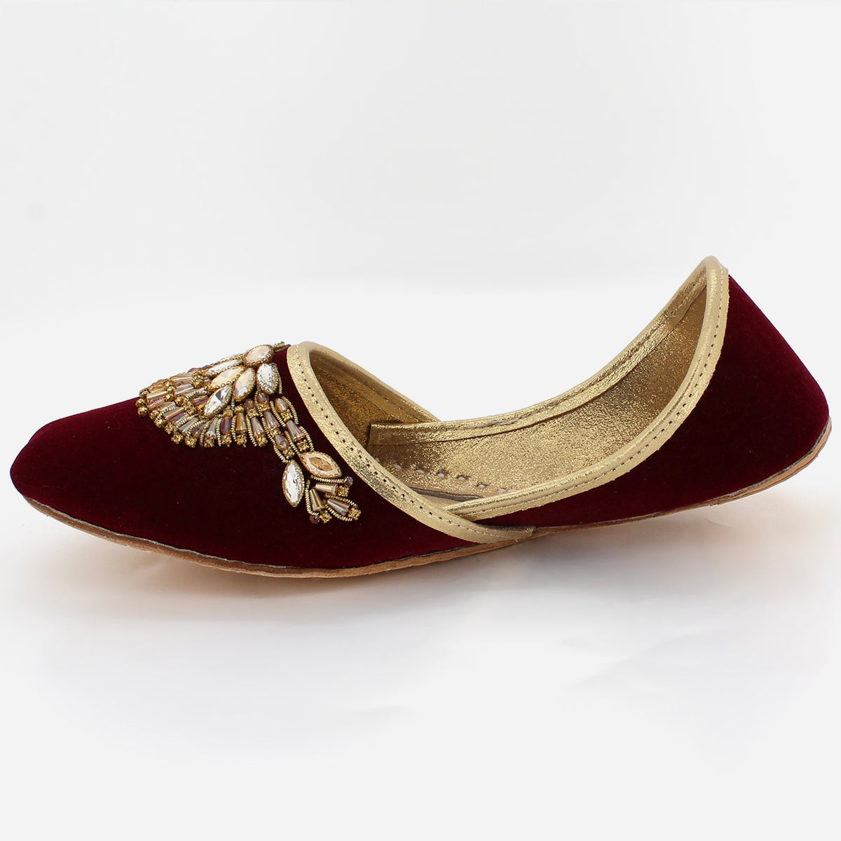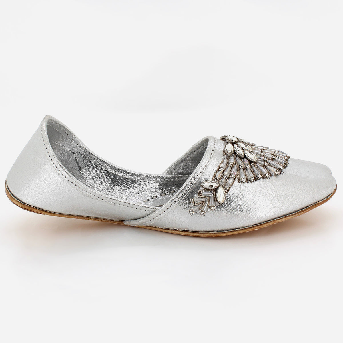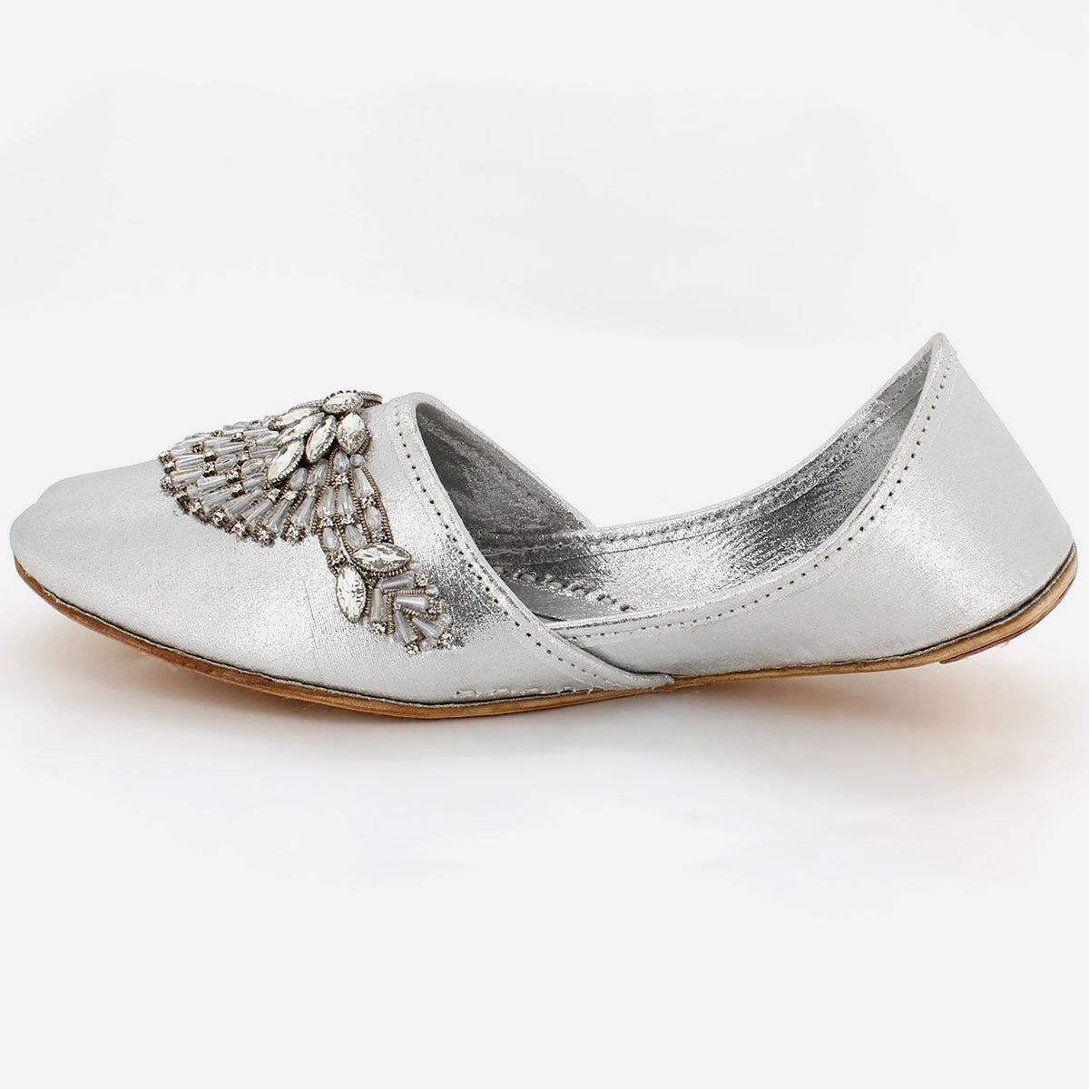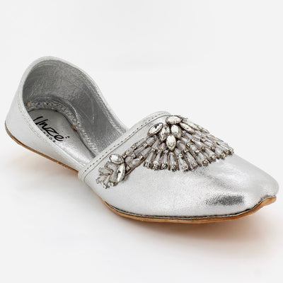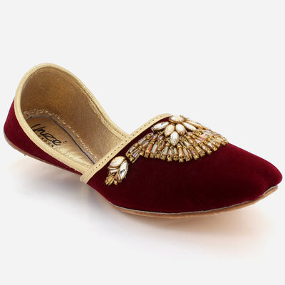 Turn on some charm and charisma while you put on these Indian Leather khussa. These leather made Indian khussa is handcrafted and hand stitched with embroidered work. Flat sole with easy slip on construction is for quick on and off. Left or right you can wear it both ways.