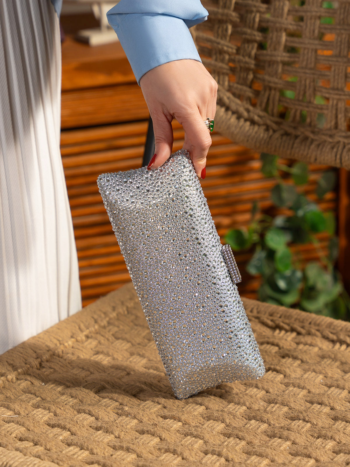 Complete your look with this elegant evening clutch, designed to add a touch of sophistication to any outfit. Featuring a sleek shape and stylish detailing, it offers enough space for your essentials while keeping your style on point. Perfect for parties, weddings, and formal events.
