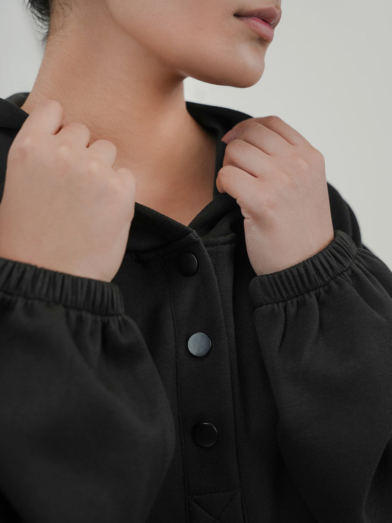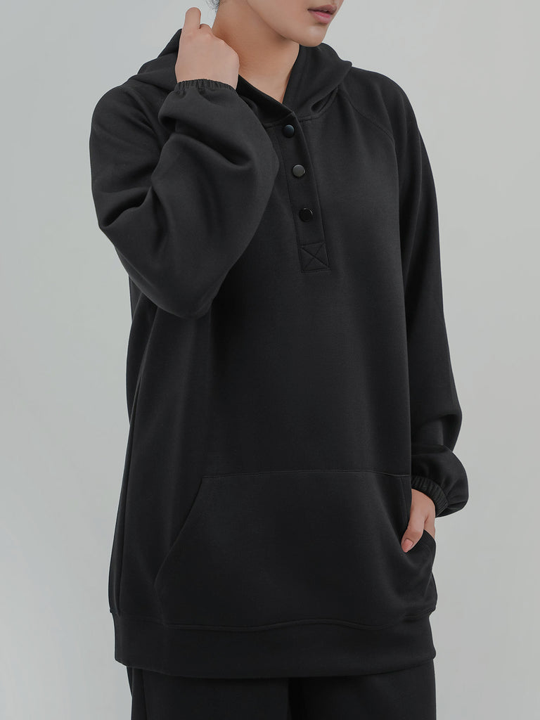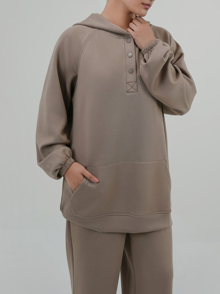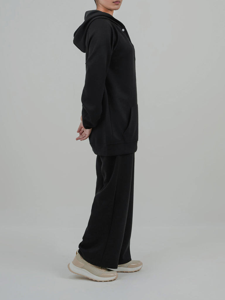Stay warm and comfy in this soft fleece co-ord set for women. It features a button-up hoodie with front pocket and matching pants with elastic waist. Perfect for casual days, lounging, or running errands in style.