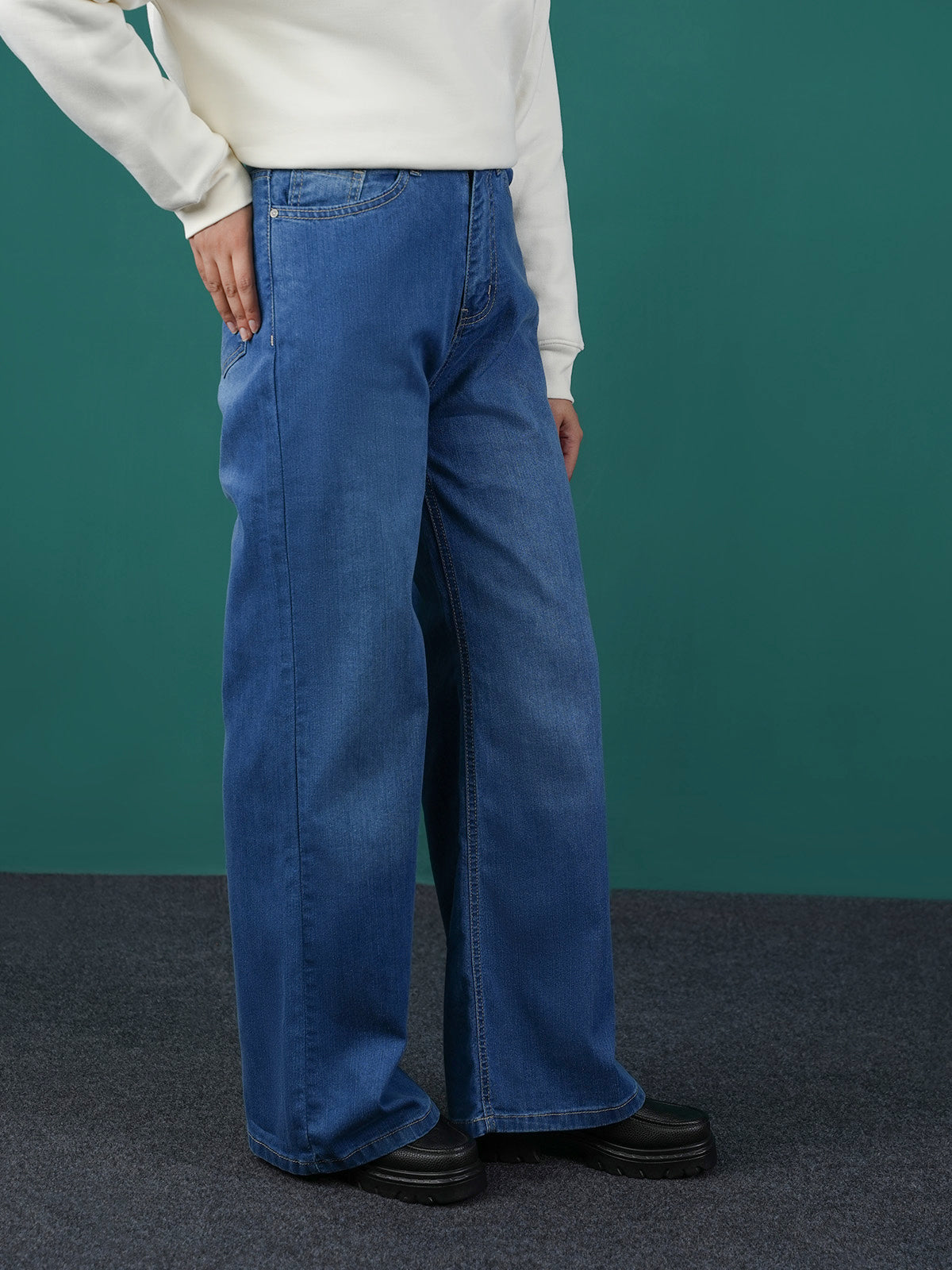 Relaxed Plazo Fit Denim Pant
