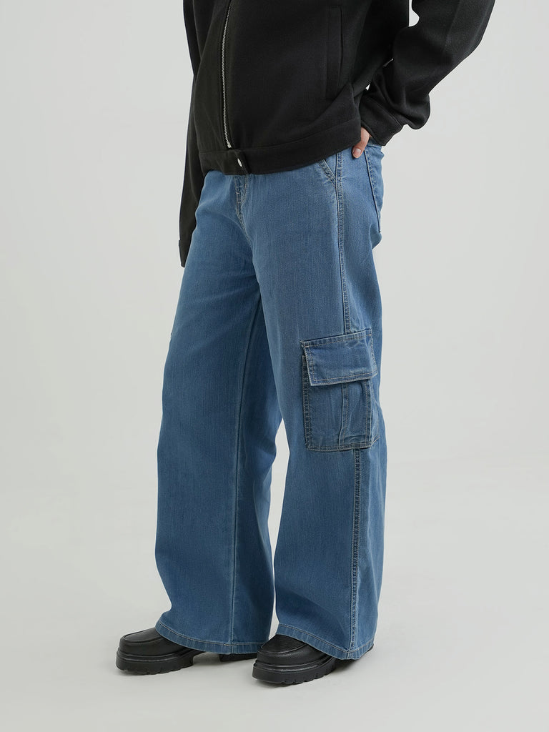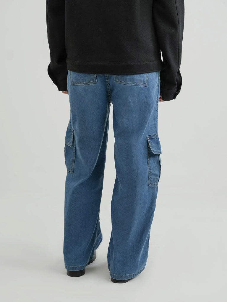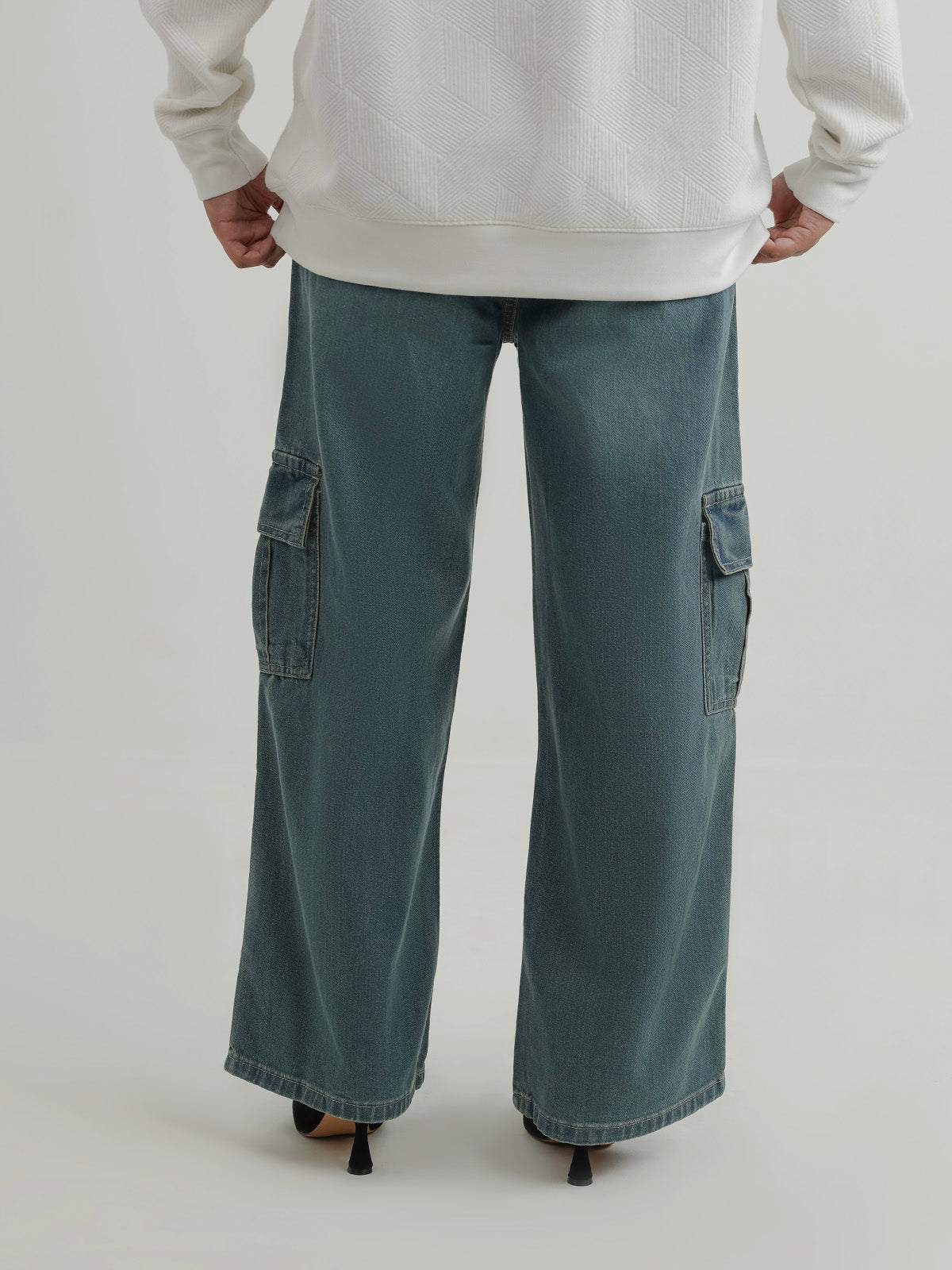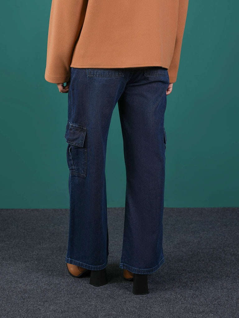 These women's cargo fit denim jeans are made from soft 100% cotton fabric for all-day comfort. Featuring a relaxed fit with functional cargo pockets, they offer a trendy yet practical style. Easy to pair with any top, they're perfect for everyday wear with a touch of street-style edge.