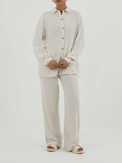 Stay effortlessly stylish with this women's linen co-ord set, designed for a perfect blend of comfort and elegance. The matching top and bottoms create a cohesive, trendy outfit, making styling easy.