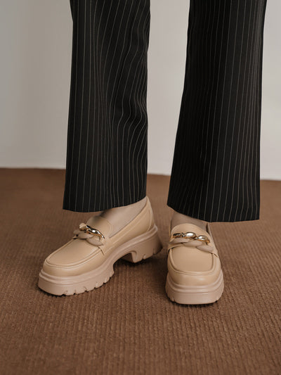 These chic slip-on women’s shoes, made from durable PU, are adorned with a striking metallic buckle on the vamp. Ideal for a polished yet easygoing look, perfect for both casual and formal settings.