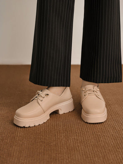 These women’s PU shoes feature a sleek lace-up closure and a metallic studs on lace edges, offering both a secure fit and a stylish touch. Designed for comfort and versatility, they add a chic edge to any look.