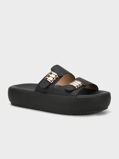 Unze London women’s Casual slippers are designed for everyday ease with a fashionable twist. Featuring soft soles, glossy straps, and gold detailing, they blend comfort with chic style.