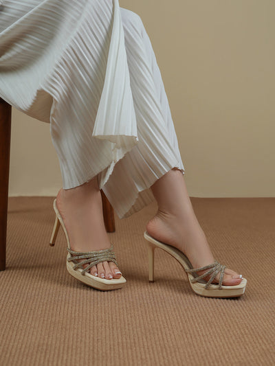 Add a touch of sparkle with this Heels, featuring intricate details that shine with every step. Perfect for elevating your evening look, they combine elegance with a statement making design.