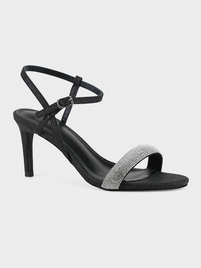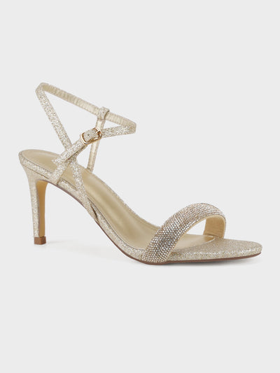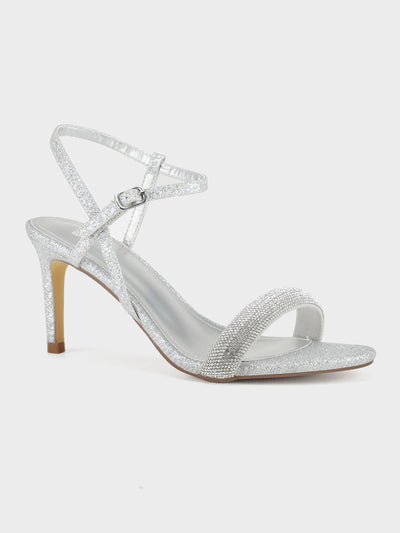 Elevate your style with these pencil heel evening sandals featuring an open-toe design and a sparkling crystal-embellished ankle strap. Perfect for adding elegance to any special occasion.