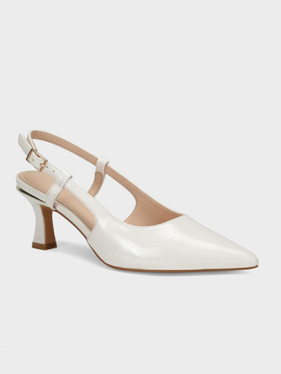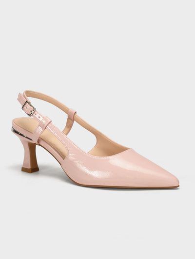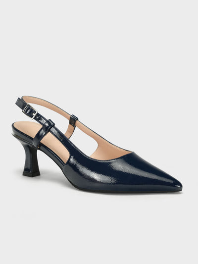 Elevate your style with these buckled back strap pointy toe court shoes. The sharp, pointed toe adds a refined, modern touch, while the back strap with a stylish buckle detail ensures a snug, personalized fit. Crafted for both fashion and function, these court shoes feature a sleek design and a stable heel, making them perfect for adding a touch of sophistication to any day-to-night look.