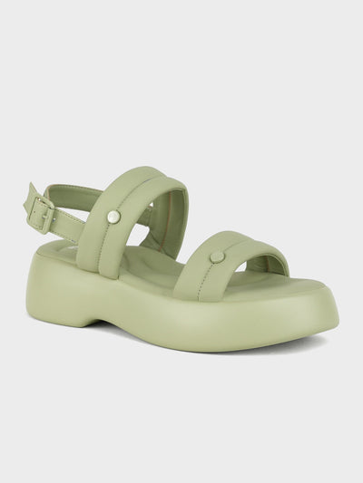 Elevate your casual look with these open-toe sandals, designed with a heel and a comfy PU sole for all-day wear. Dual strappy upper with open toe and back strap that has adjustable buckle closure for perfect fitting.