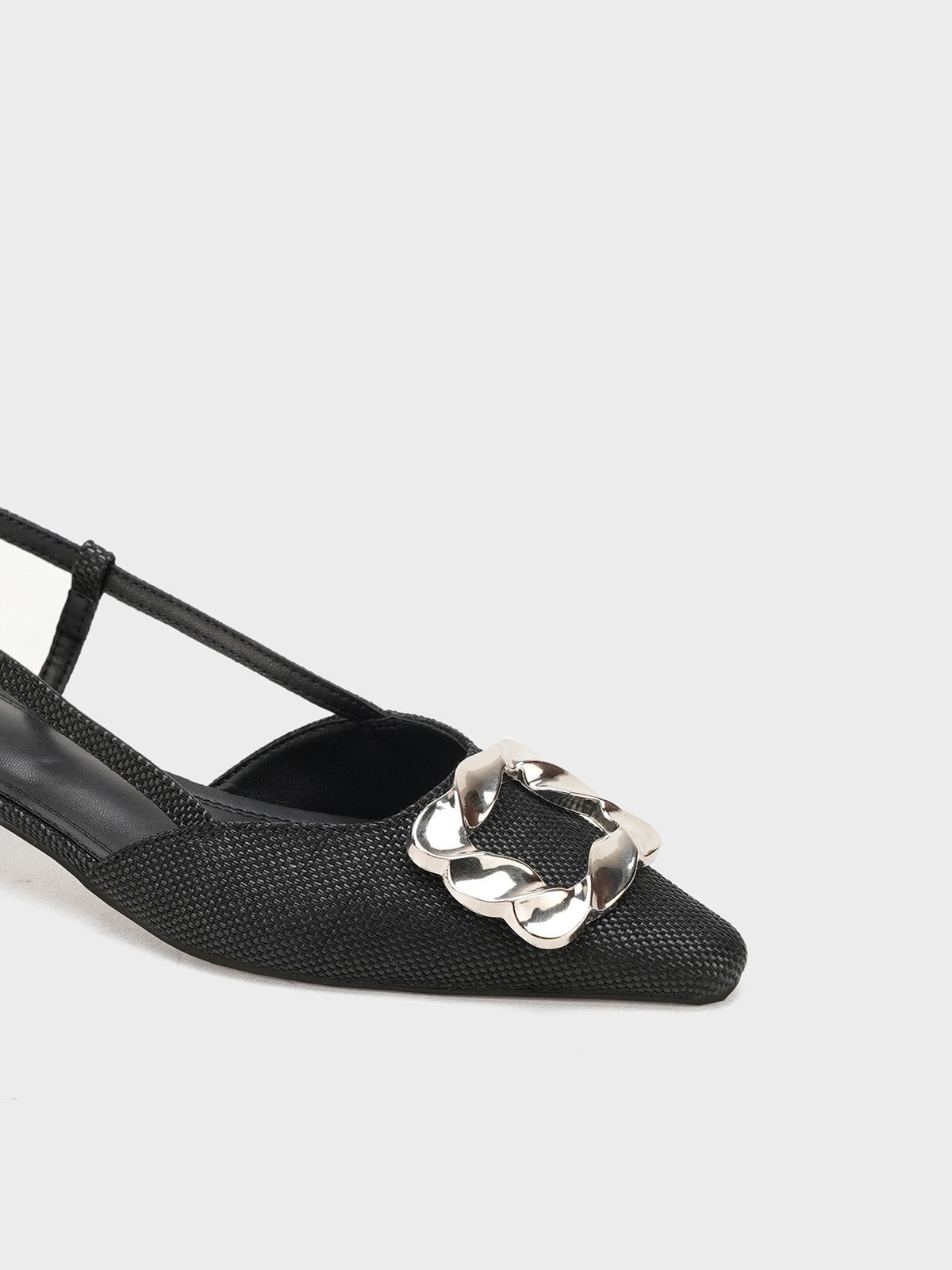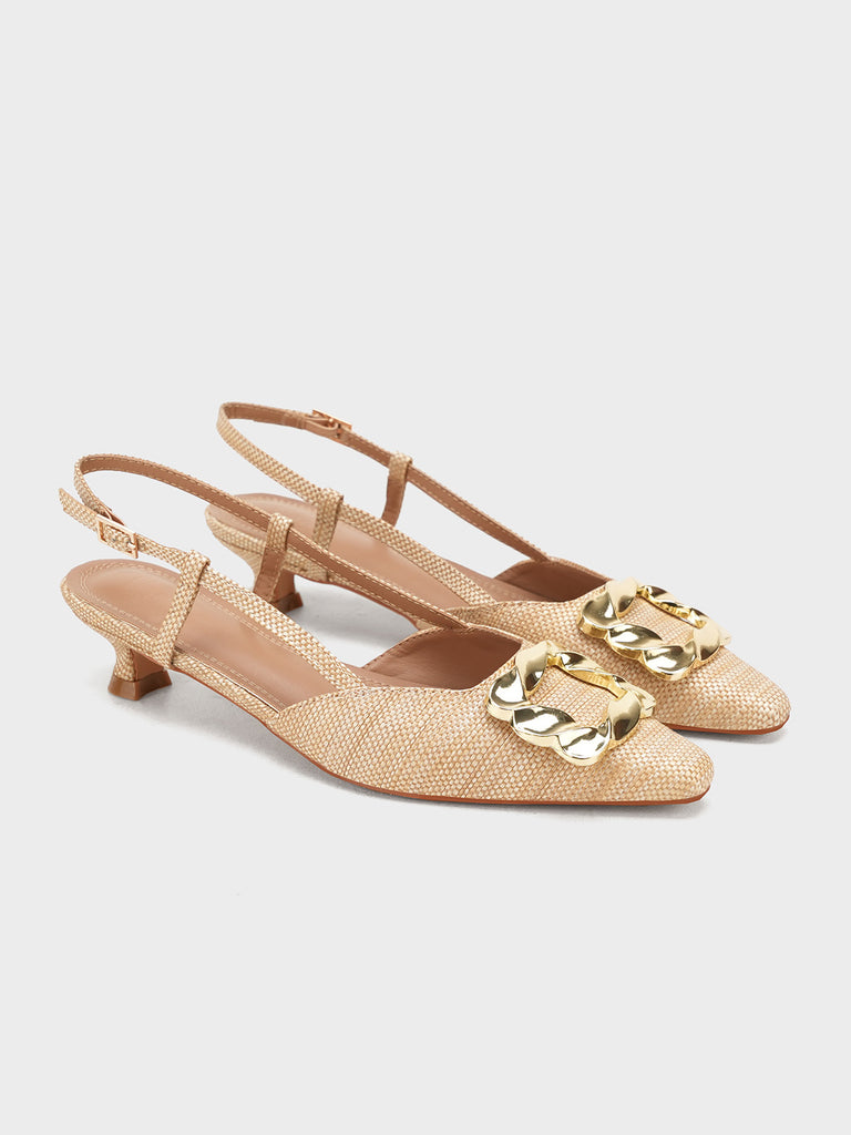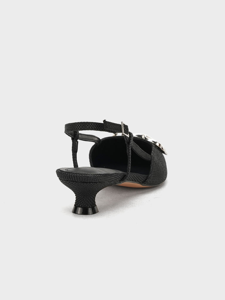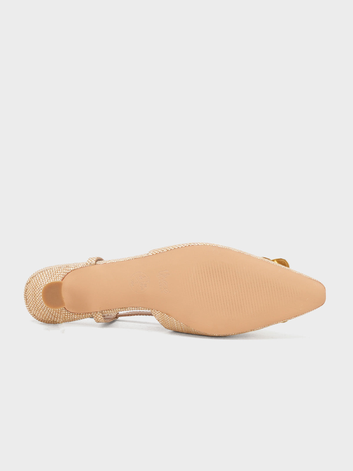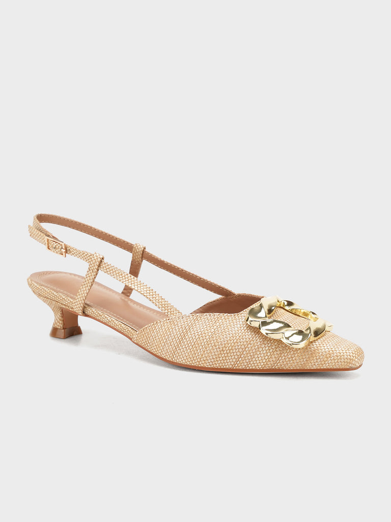 Make a statement with these elegant women’s buckle sandals, designed to add instant glamour to any outfit. Featuring a pointed toe and eye-catching metallic buckle embellishments, the low kitten heel ensures comfort while maintaining a graceful silhouette.