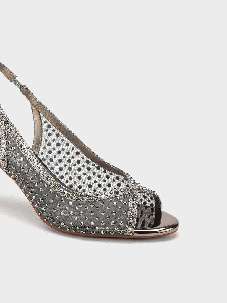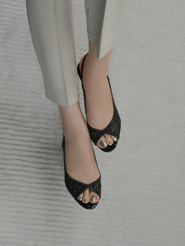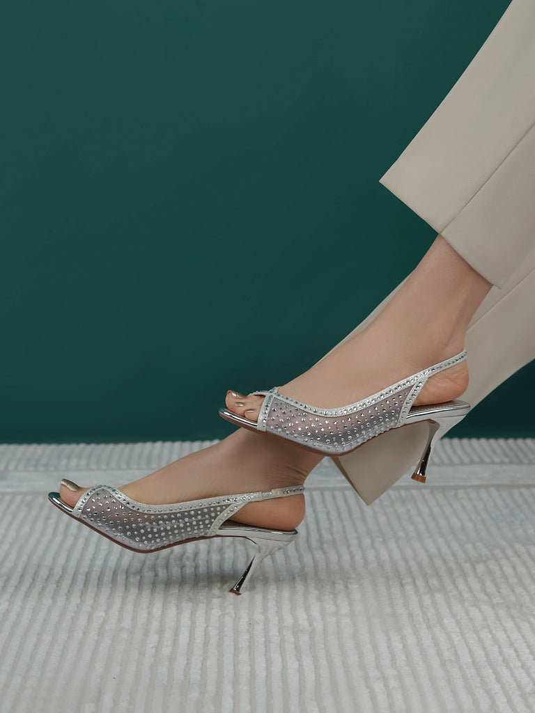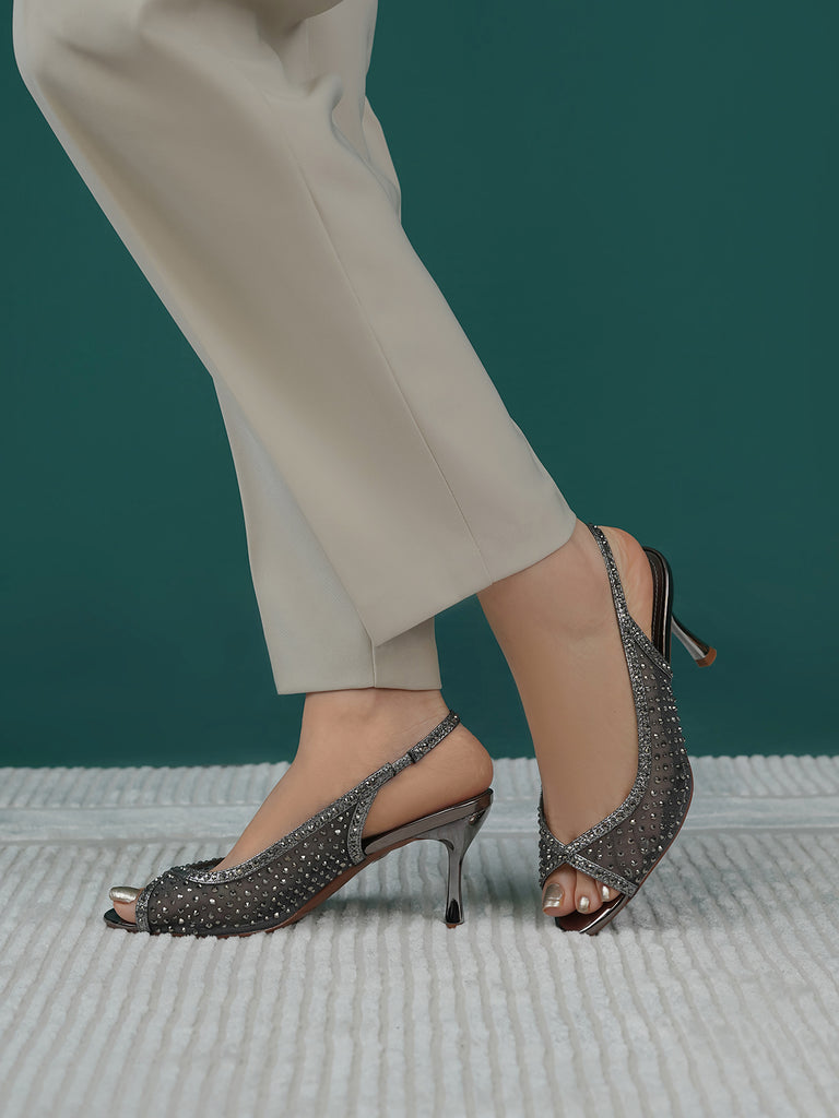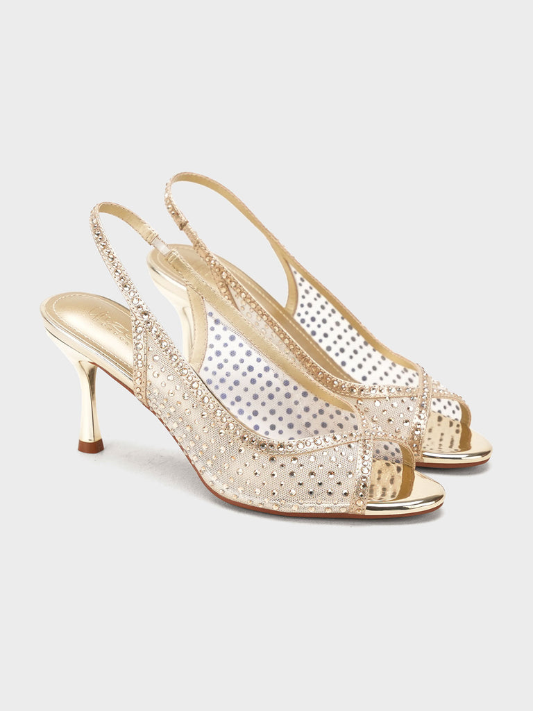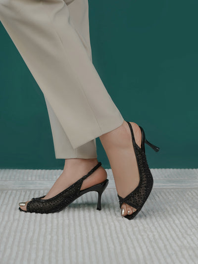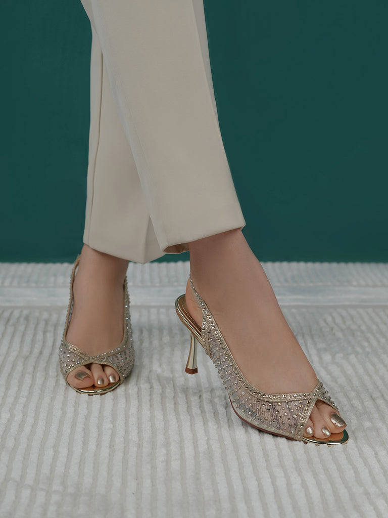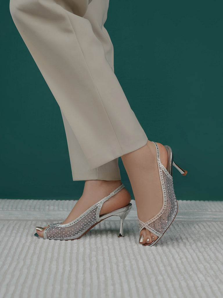 These fancy slingback heels are perfect for weddings, parties, and formal events. Designed with shiny stones and a stylish open toe, they offer a classy and modern look. The soft footbed and back strap give comfort and support for long wear.