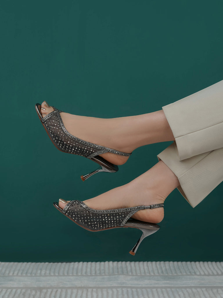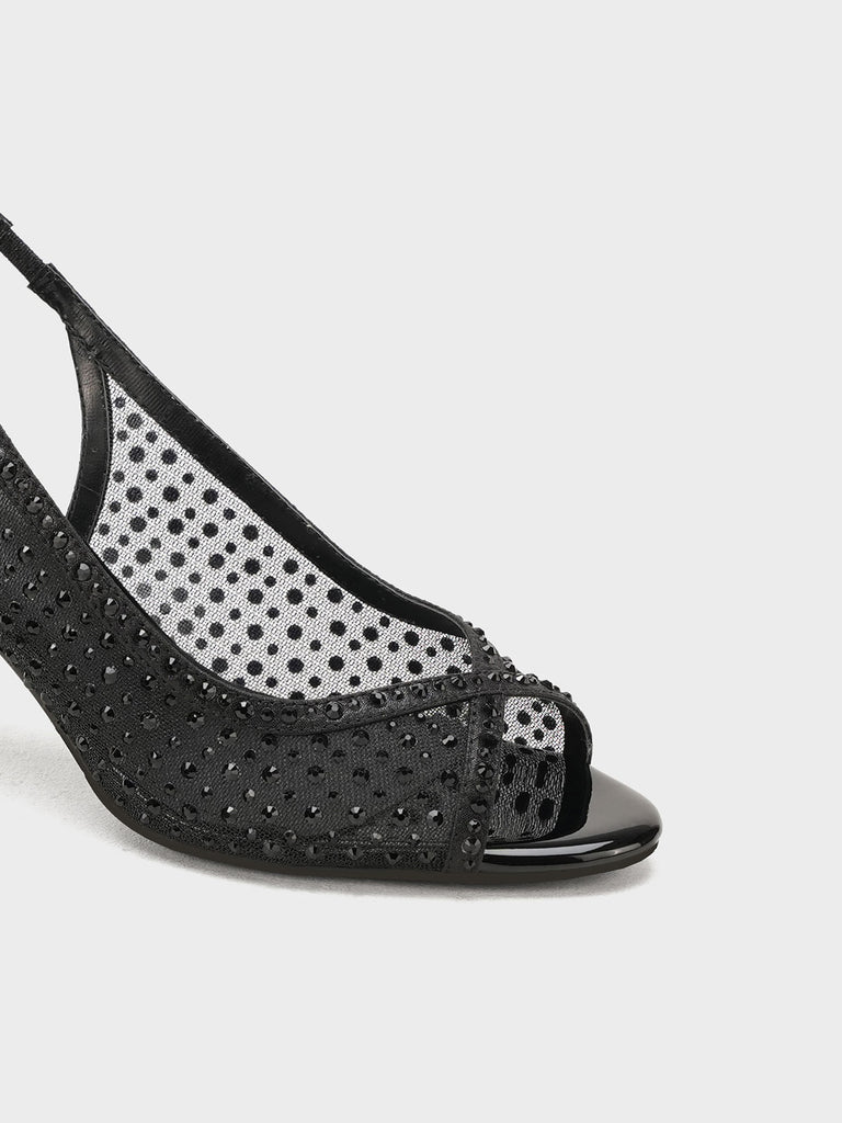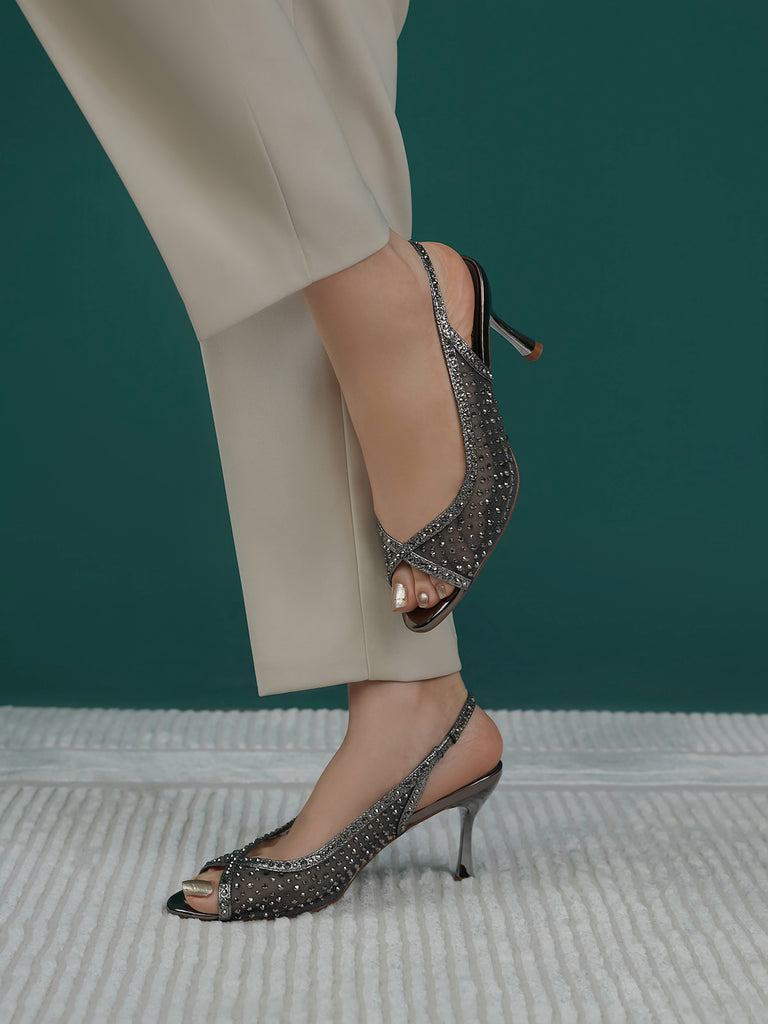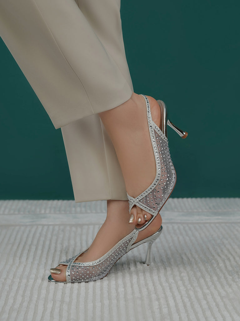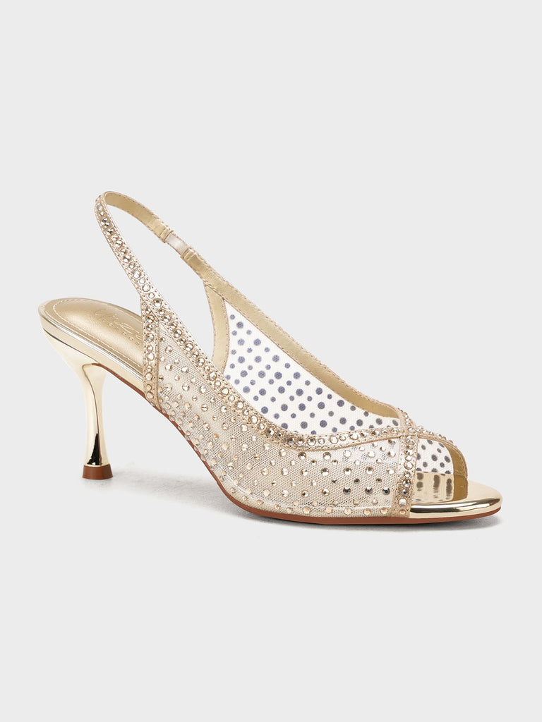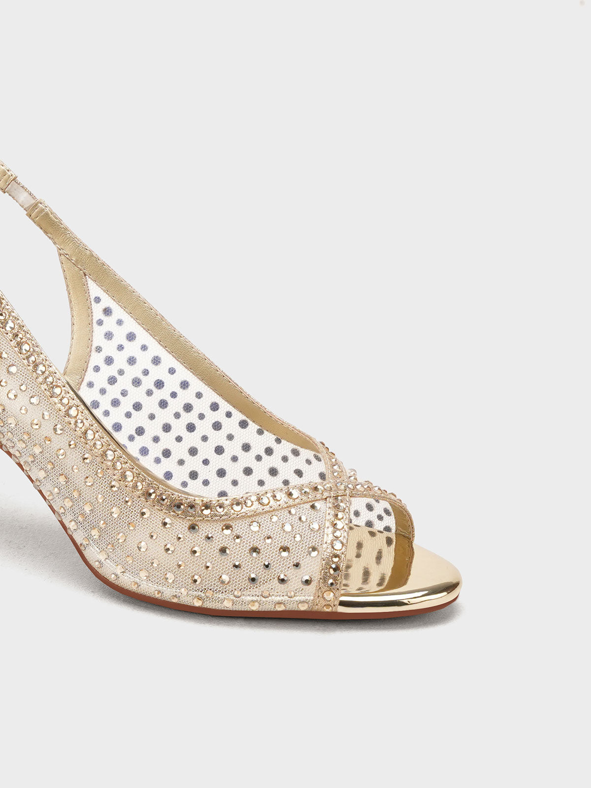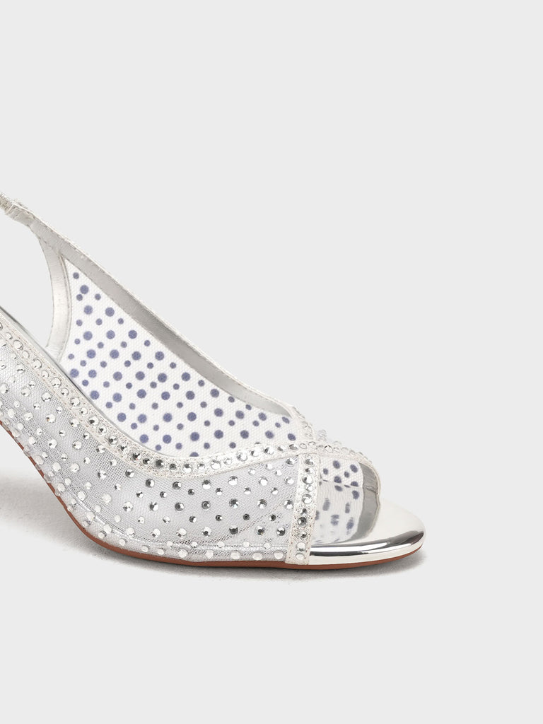 These fancy slingback heels are perfect for weddings, parties, and formal events. Designed with shiny stones and a stylish open toe, they offer a classy and modern look. The soft footbed and back strap give comfort and support for long wear.