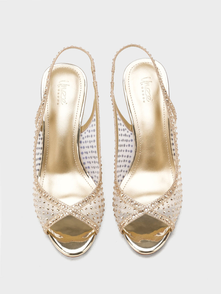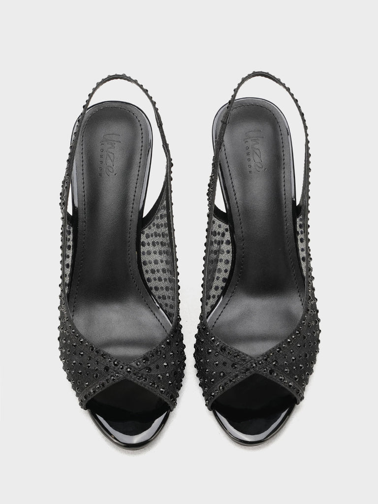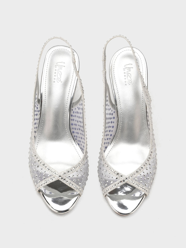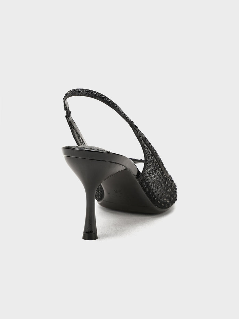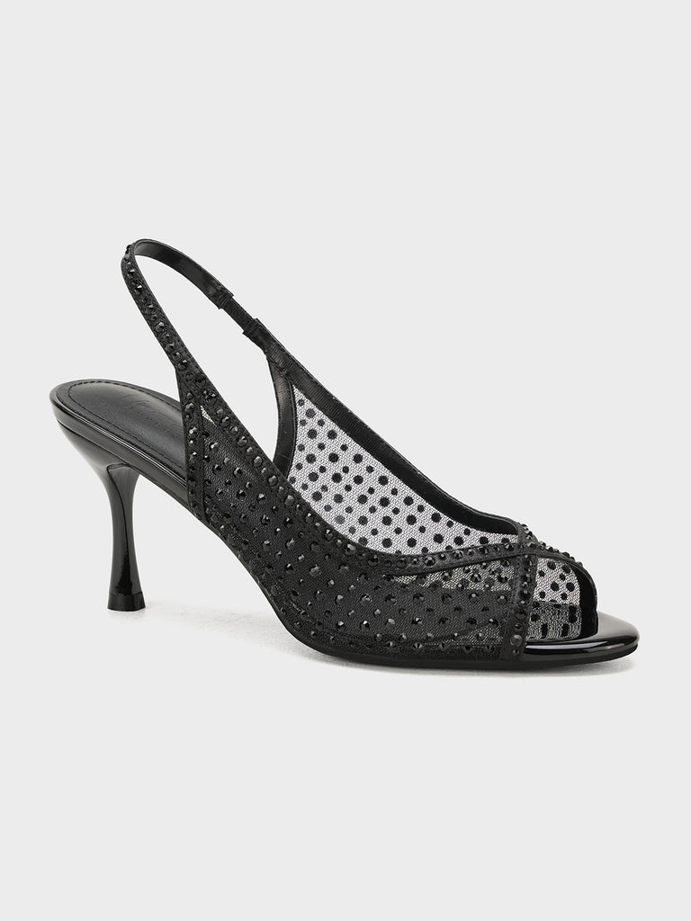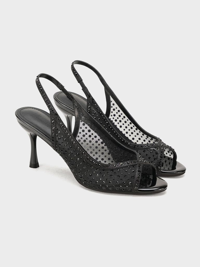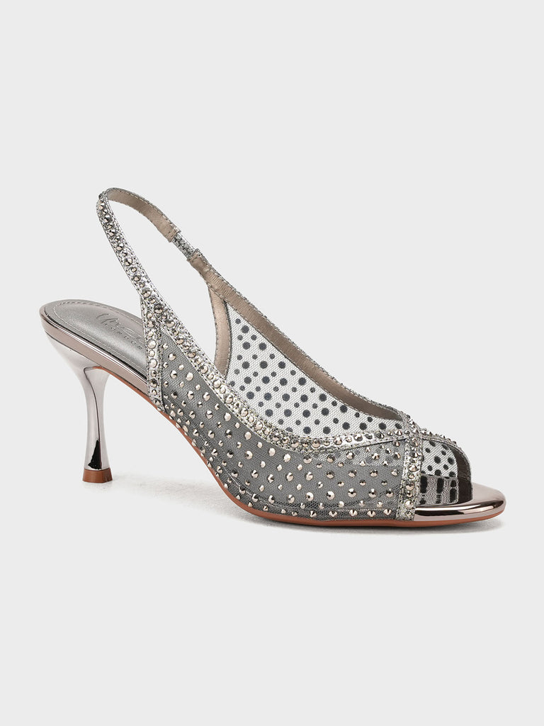 These fancy slingback heels are perfect for weddings, parties, and formal events. Designed with shiny stones and a stylish open toe, they offer a classy and modern look. The soft footbed and back strap give comfort and support for long wear.