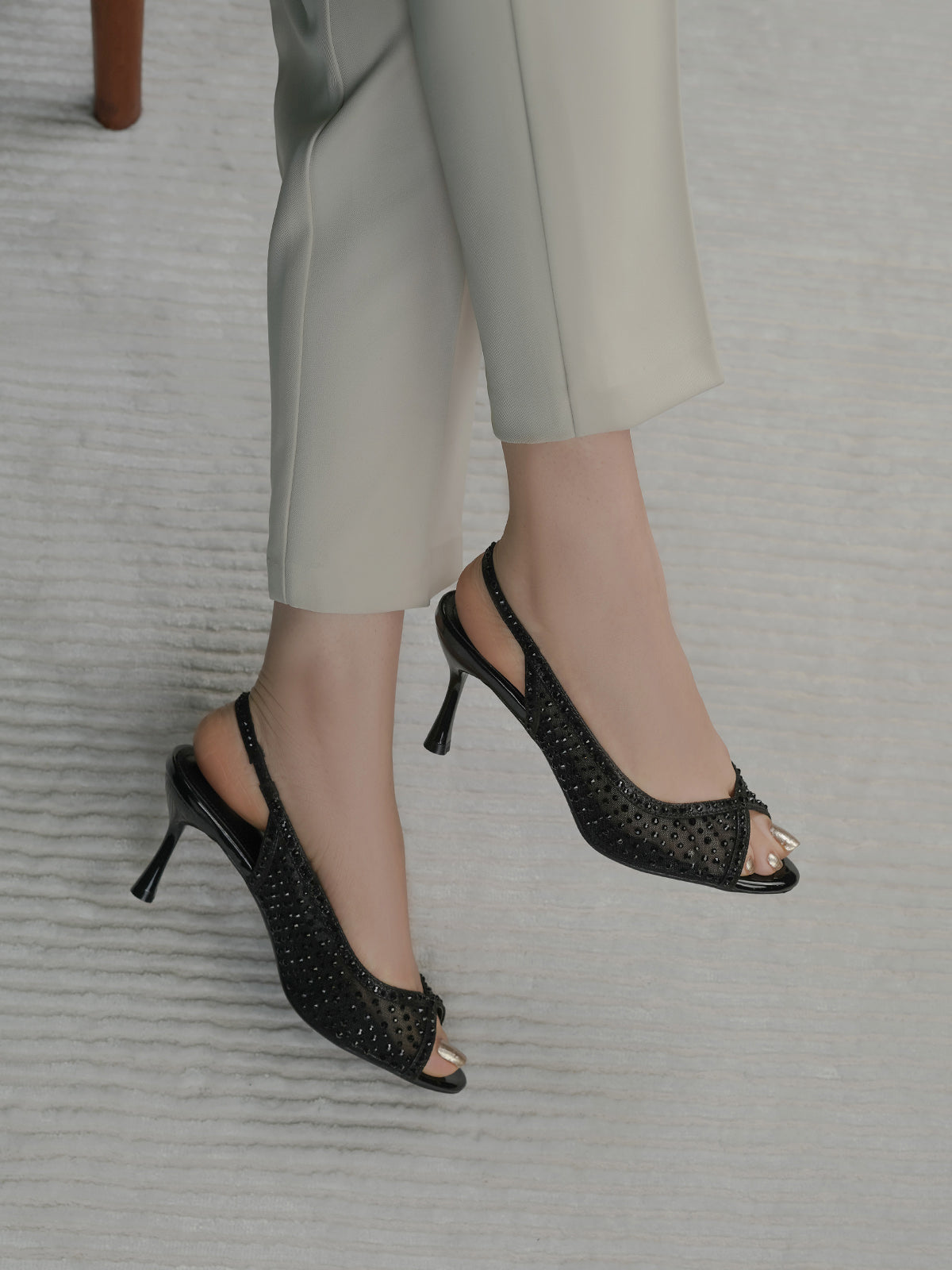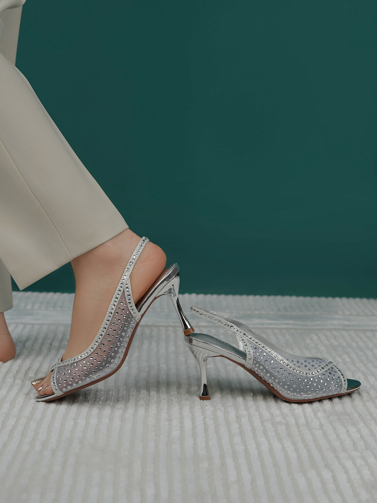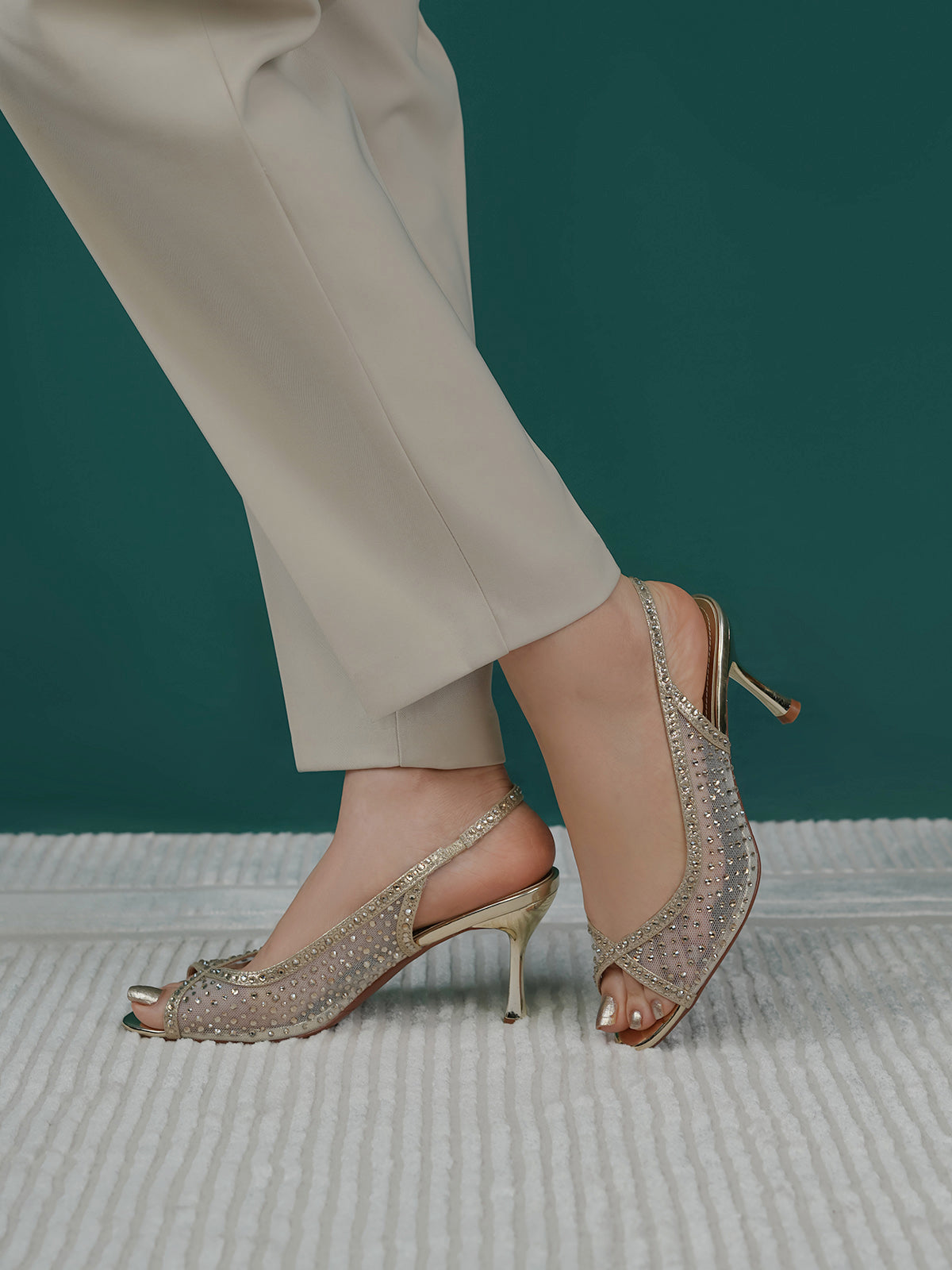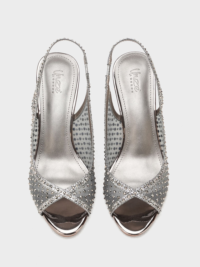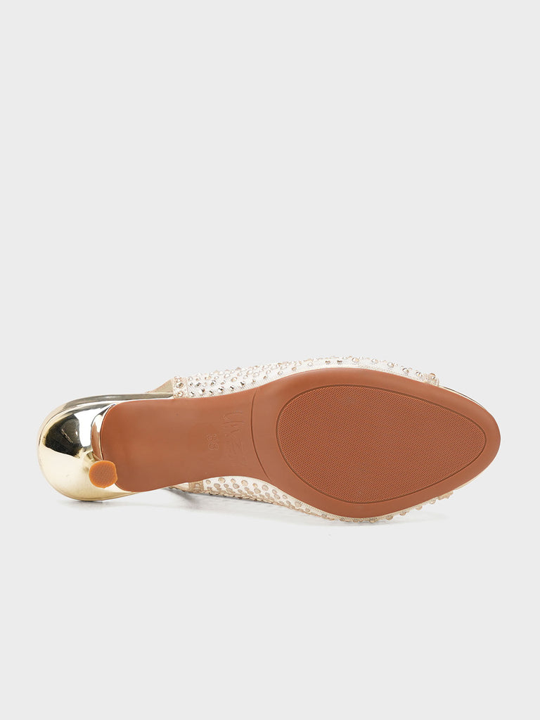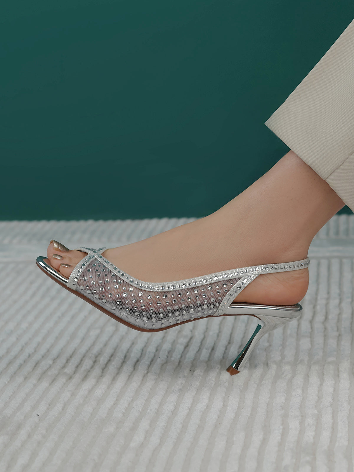 These fancy slingback heels are perfect for weddings, parties, and formal events. Designed with shiny stones and a stylish open toe, they offer a classy and modern look. The soft footbed and back strap give comfort and support for long wear.