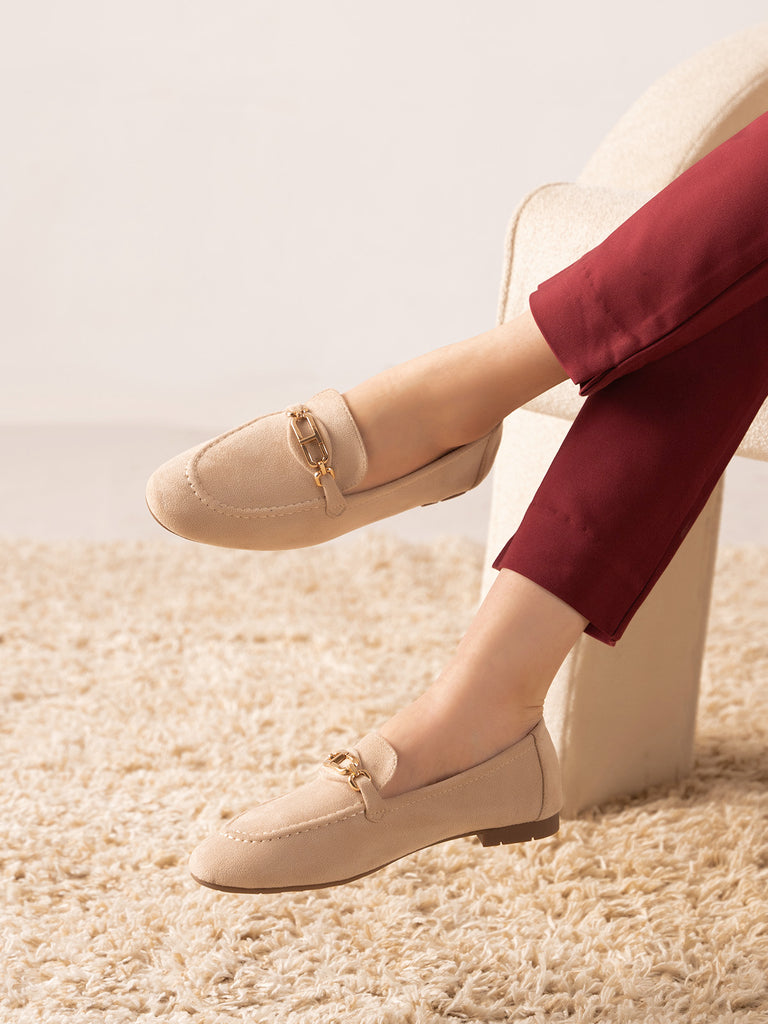 These fabric ballerinas offer soft comfort with a stylish touch. Designed with a sleek buckle on top and an easy slip-on style, they’re perfect for daily wear. Lightweight, breathable, and great for both casual and smart looks.