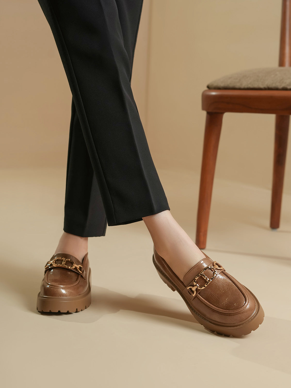 These chic loafers feature a stylish buckle on top and an easy slip-on design for everyday comfort. Made for both fashion and function, they’re perfect for casual outings, office wear, or daily use. Soft, lightweight, and always in style.