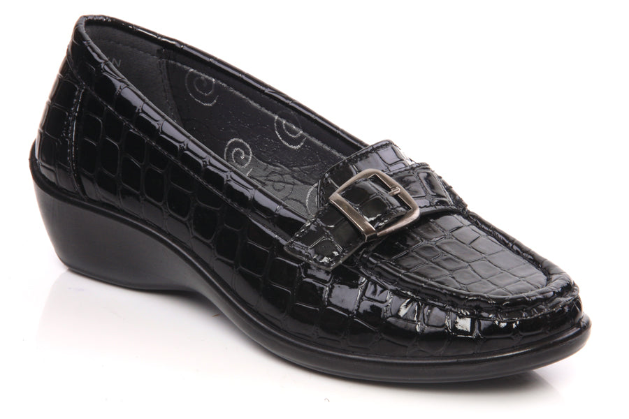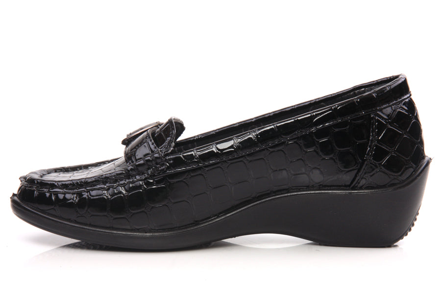 Every woman needs a complete looks with perfect pair of ballet flats to walk around the town in evening or sunny days. These slipon wedge heel shoes is a refreshing pick for a day at the office or hanging out downtown. Style No: L24146 Colour: Black