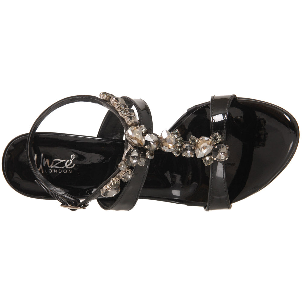 Any outfit can be planned with these adorable shoes! Versatile for any type of evening wear. T bar strap that is encrusted with stones and an ankle strap with buckle closure for perfect fitting. Mid low stiletto heel is for fun and comfort. Open toe design with soft PU upper and lining and sole is also featured in these sandals.