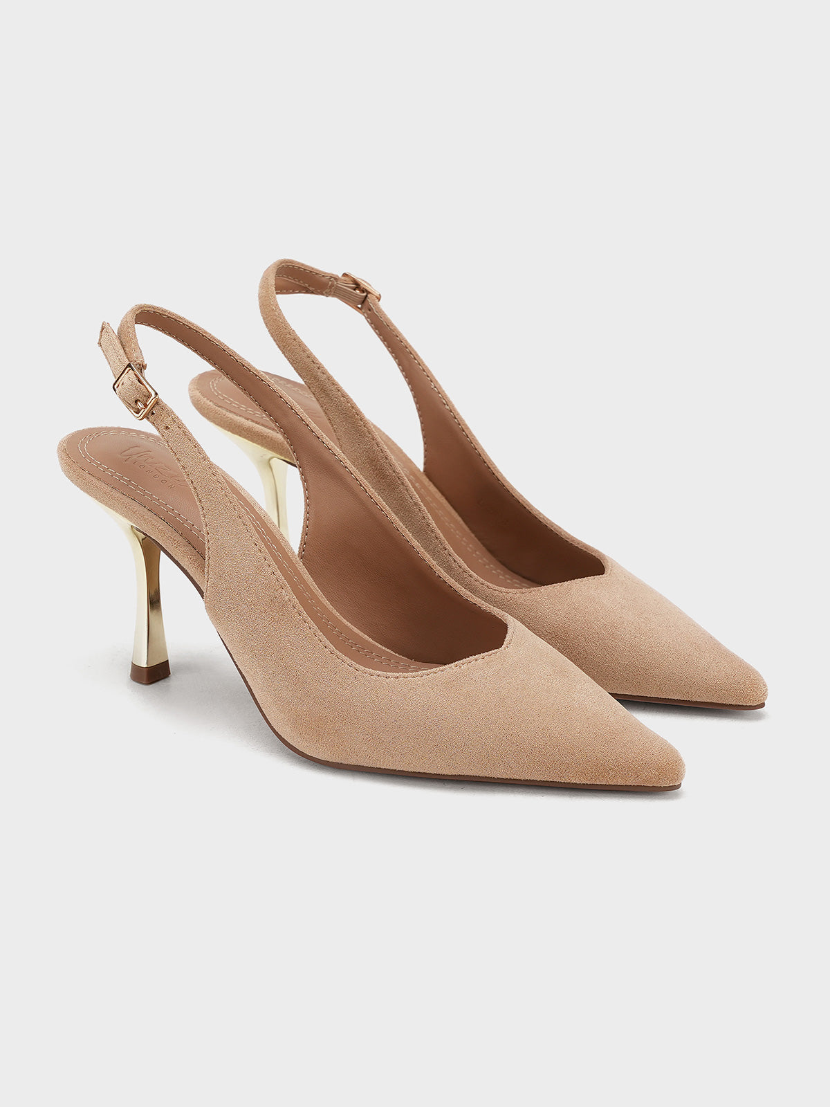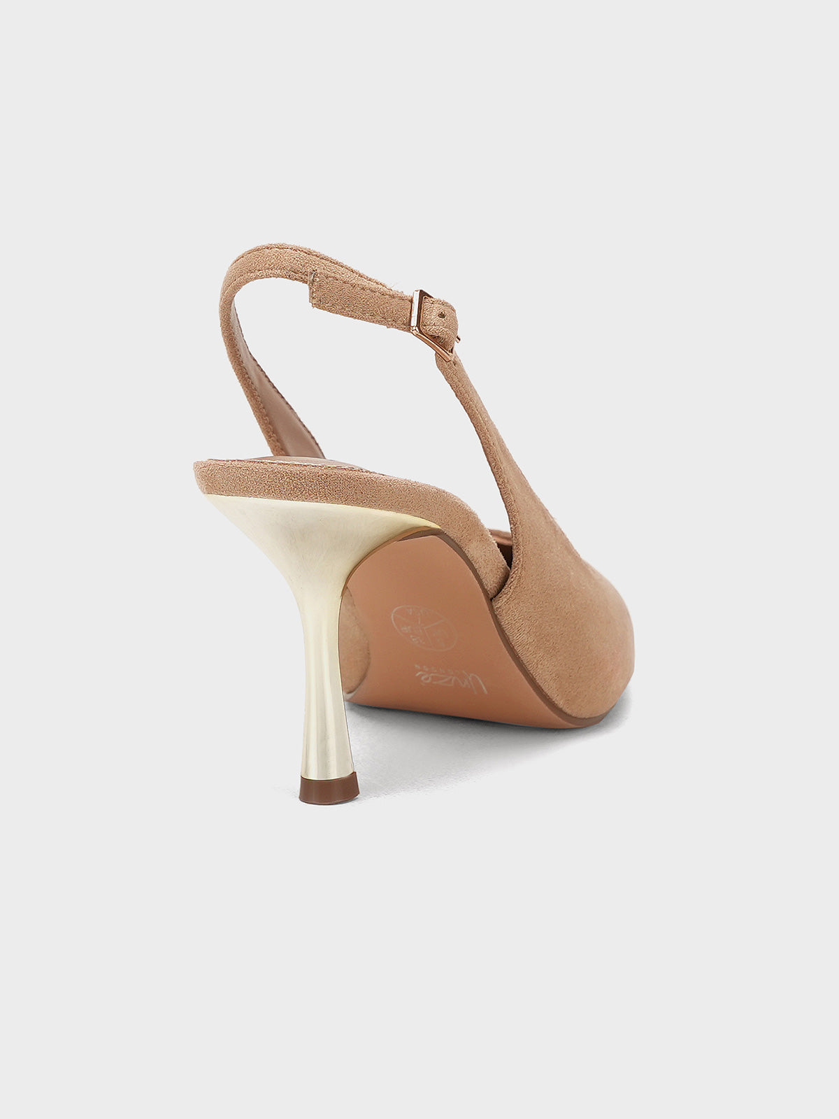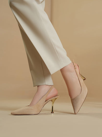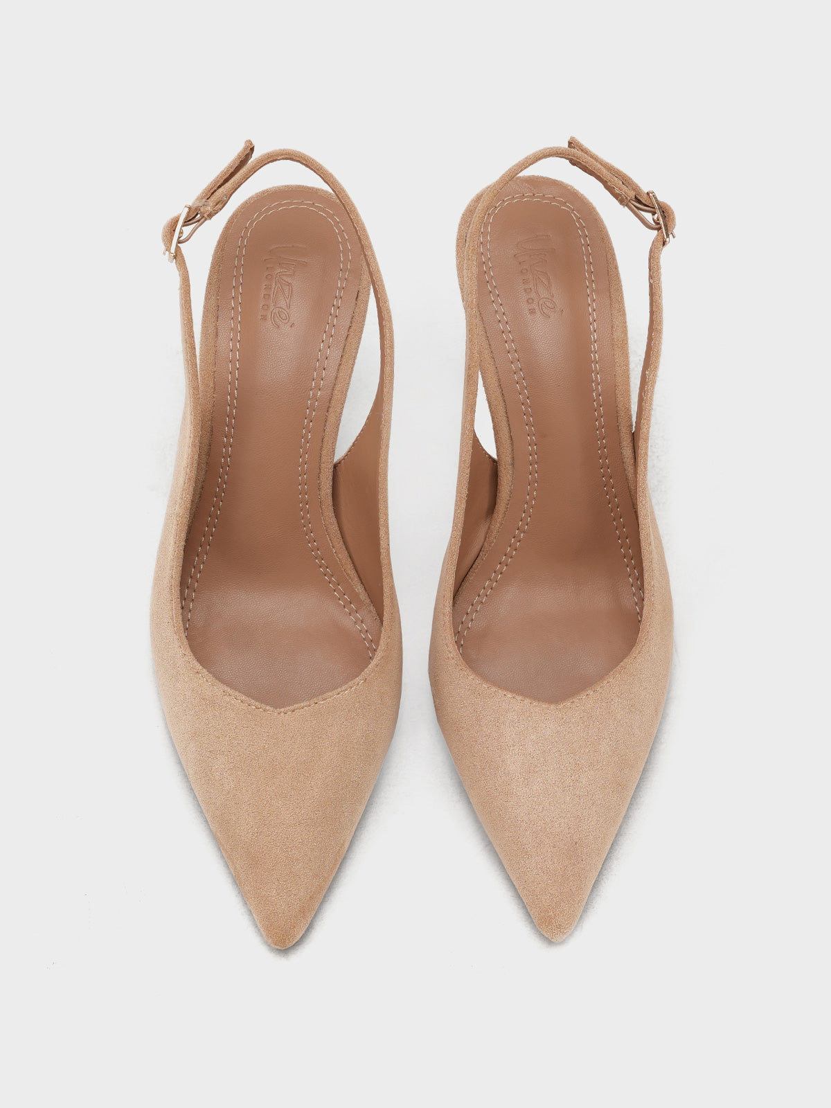 Add elegance to your steps with these pointed-toe women’s sandals featuring a stylish slingback buckle. Crafted in a soft suede finish, they offer a refined look with a sleek stiletto heel for just the right amount of height.