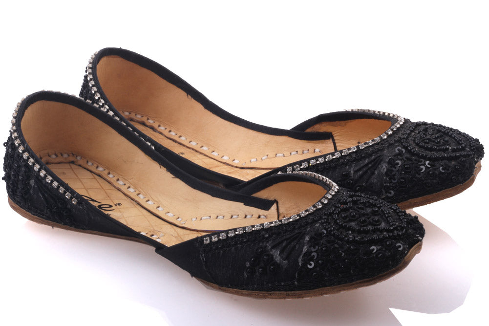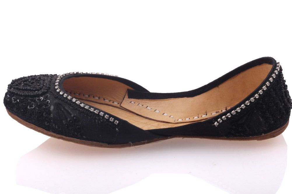 Fall in love at first sight with these stunning handmade pumps. Easy slip-on design with inside stitch detailing. These classy pumps are made of leather and adorned with thread work and stones. Leather made pumps are hand crafted and hand made. Either left or right you can wear them both ways.
