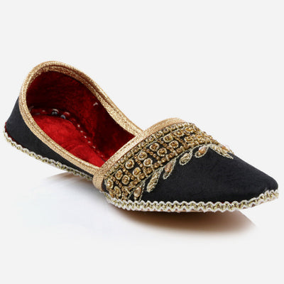 Shalimar Shoes Indian Khussa made by leather and embroided with traditional look and style. This ethnic piece gives you style with comfort. You can wear them anytime or any season they wont let you down.