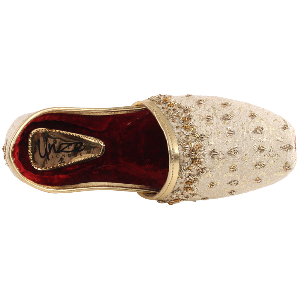 Include a tone of shimmer with these tila work theme enumerating leather Khussa. This classy Indian khussa is easy going and jazzy at the same time. Simple slip on development. Small diamante accented on the upper and the velvet lining material gives it an extra elegance and comfort. Inside sewed enumerating demonstrates the craftsmanship of this ethnic piece.