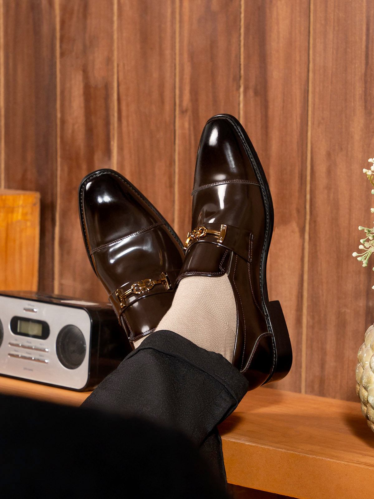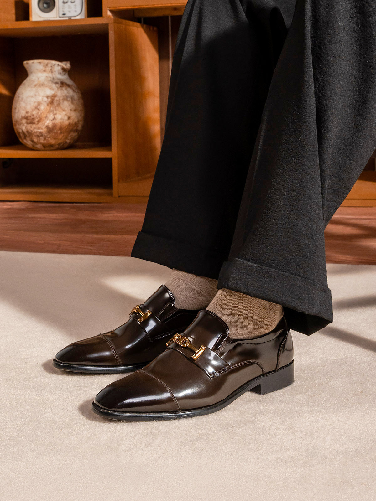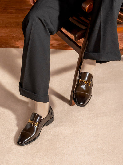 Combine sophistication and convenience with these men’s slip-on leather formal shoes. Crafted from premium-quality leather, they offer a polished and professional look perfect for office wear, business meetings, or formal events. The stylish front buckle adds a touch of elegance and modern flair.
