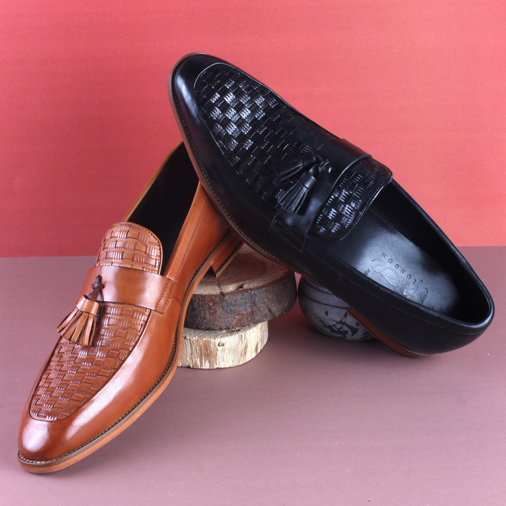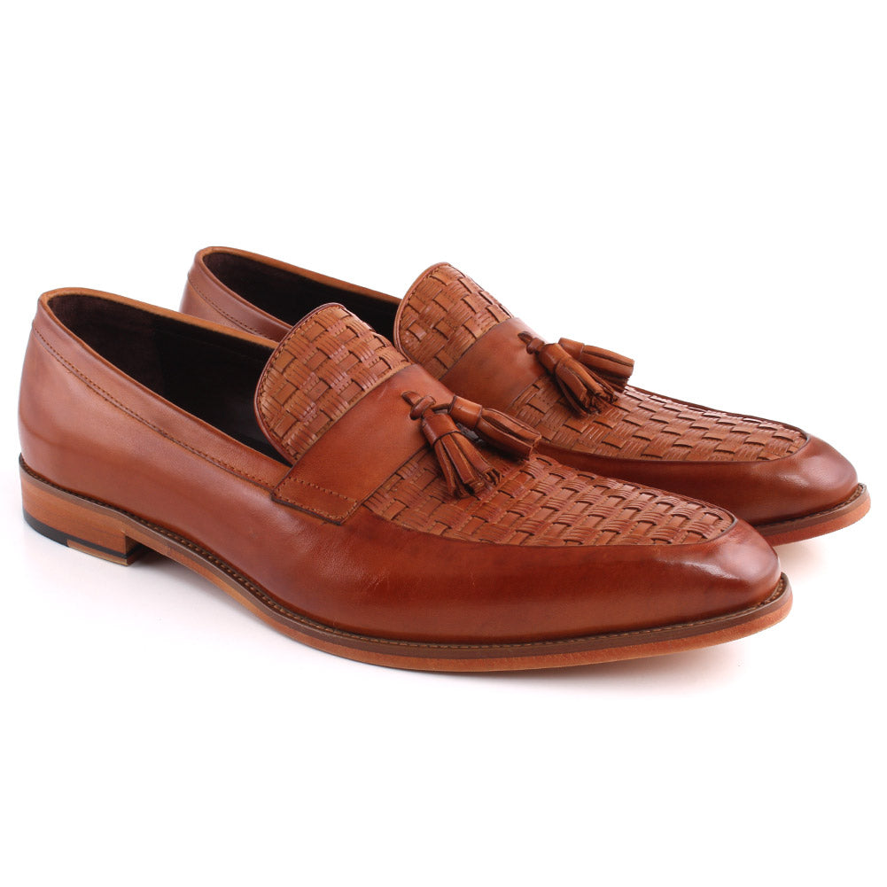 Comfort has never looked so good! Our stylish moc toe loafer features premium woven leather upper with tassels at vamp. Easy slip-on style and Durable and rubber sole provides superior comfort.