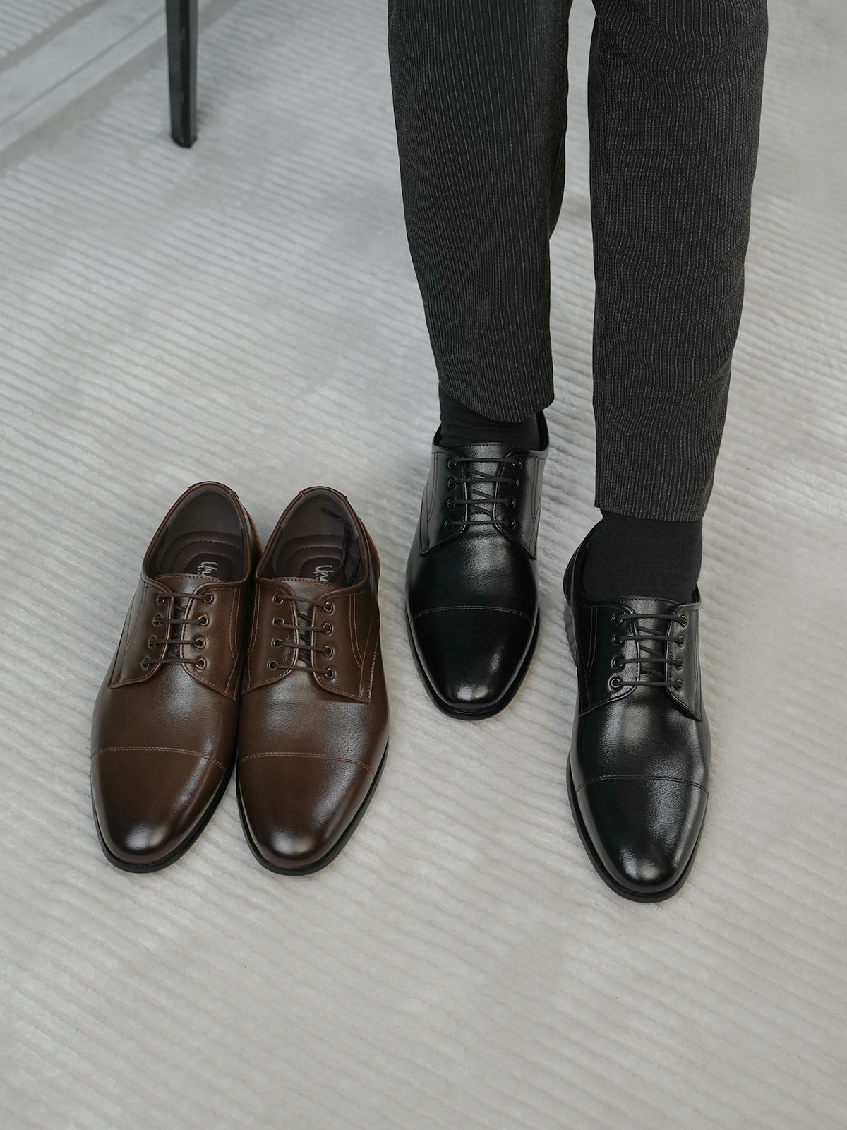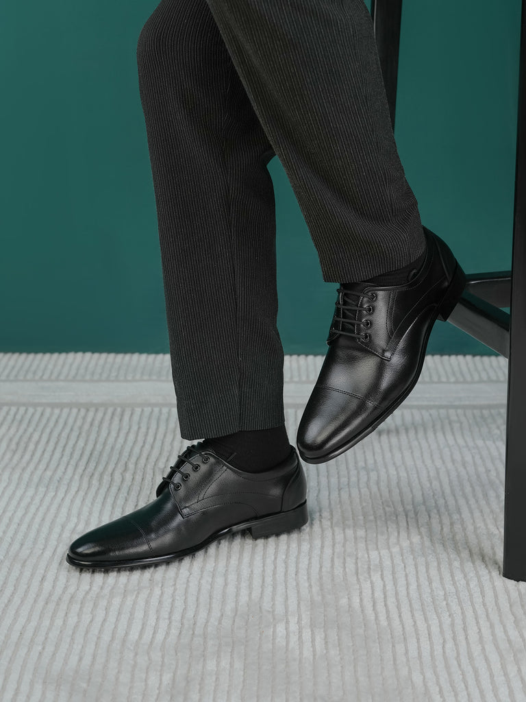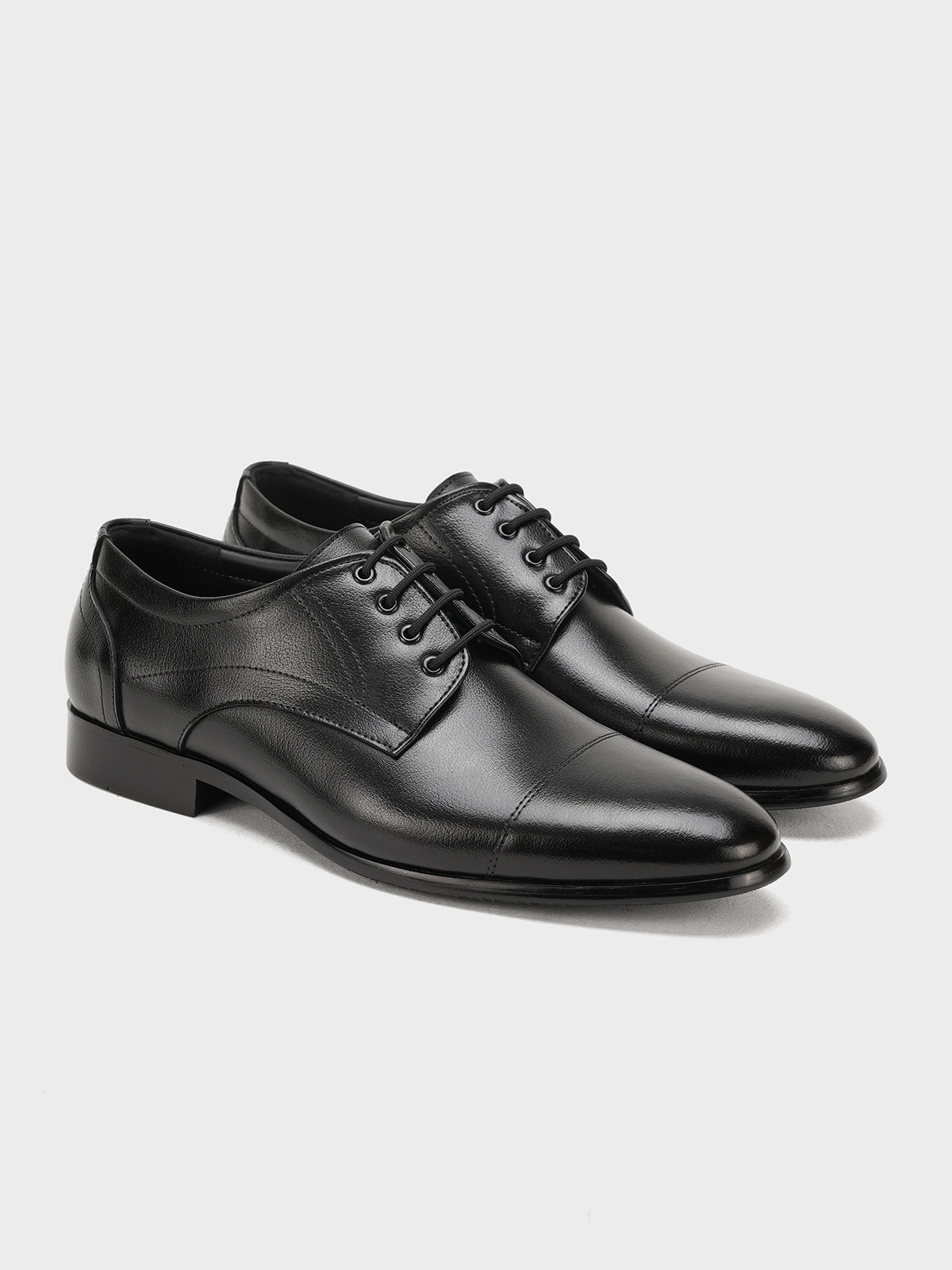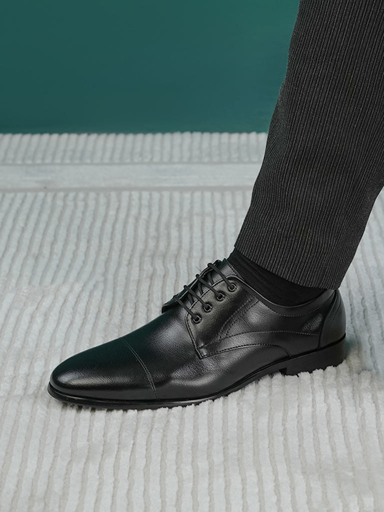 Polish your formal look with these men’s lace-up leather shoes, tailored for classic refinement and modern confidence. Featuring a sleek cap-toe design, rich black leather upper, and detailed stitching, this pair offers both durability and distinction.