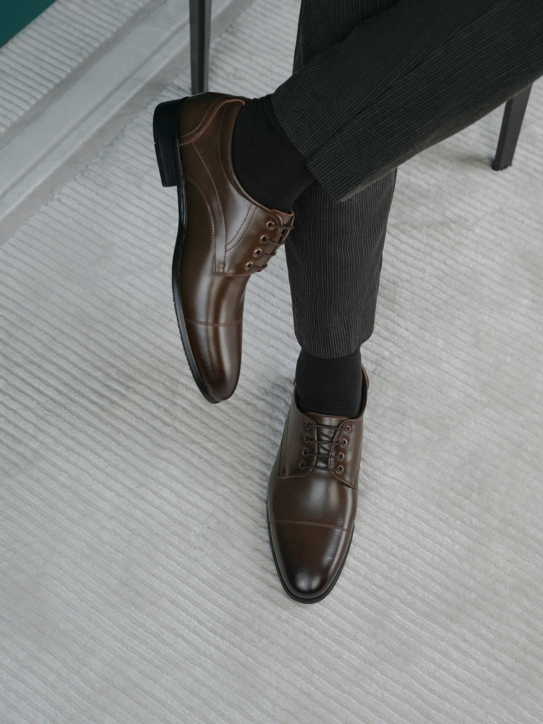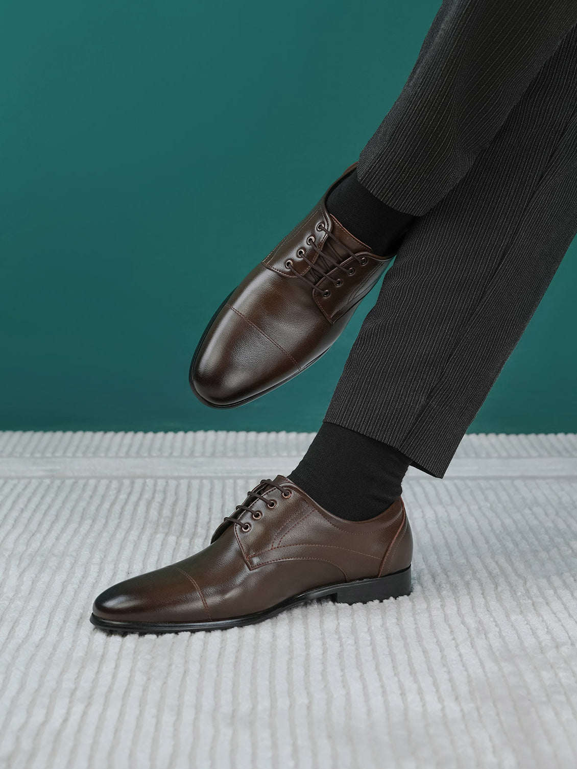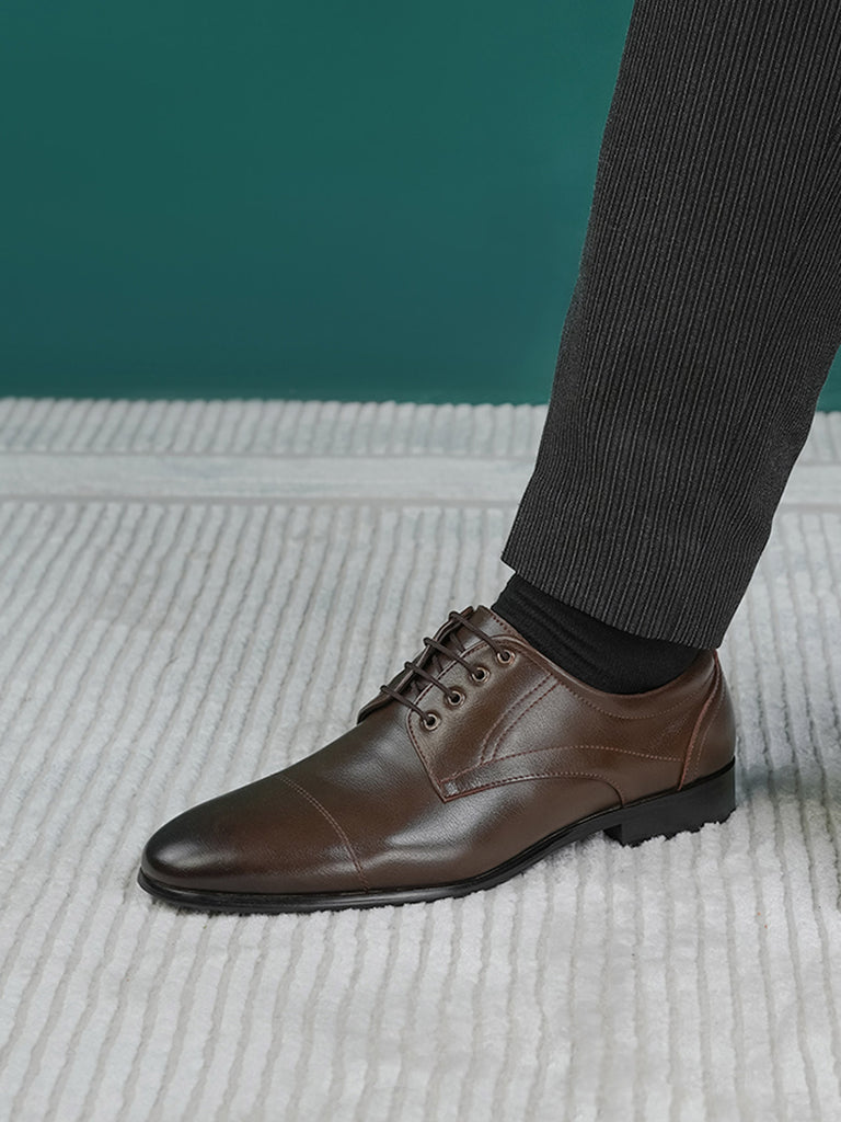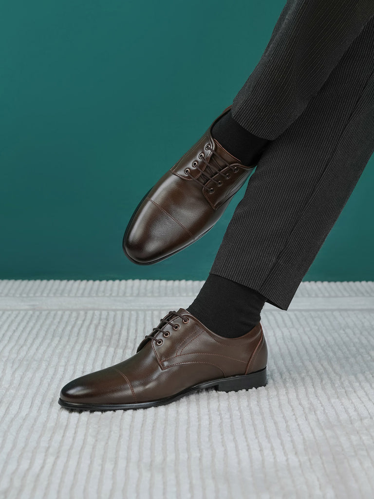 Polish your formal look with these men’s lace-up leather shoes, tailored for classic refinement and modern confidence. Featuring a sleek cap-toe design, rich black leather upper, and detailed stitching, this pair offers both durability and distinction.