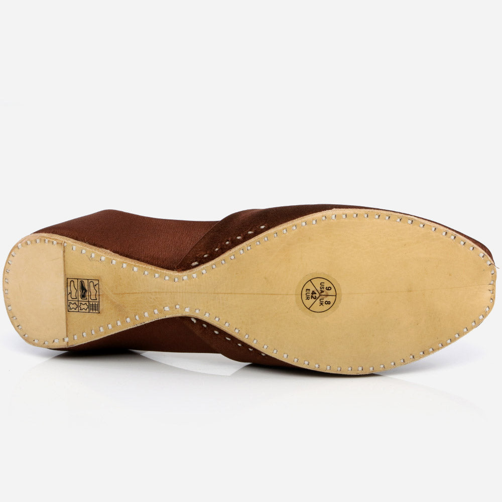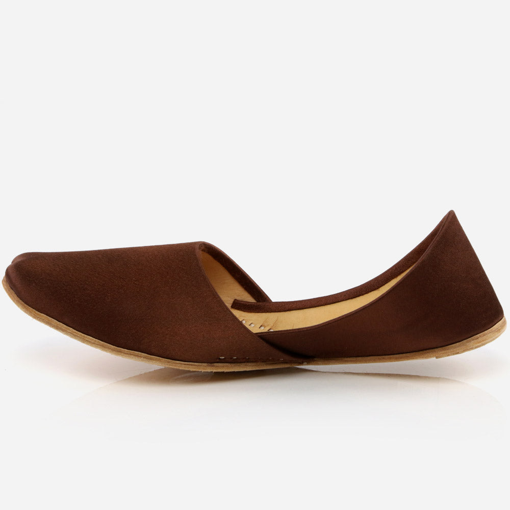 Give a dose of luxurious looks with these delicate leather Indian khussa shoes These ethnic wears have lush fabric detailing upper . Leather made upper and sole with beautifully hand crafted detailing comes with hand stitching. Easy slip-on construction is for conveniently on and off style. Either left or right you can wear it both anyways. Flat sole that is so relaxing and subtle it gives comfort to your feet