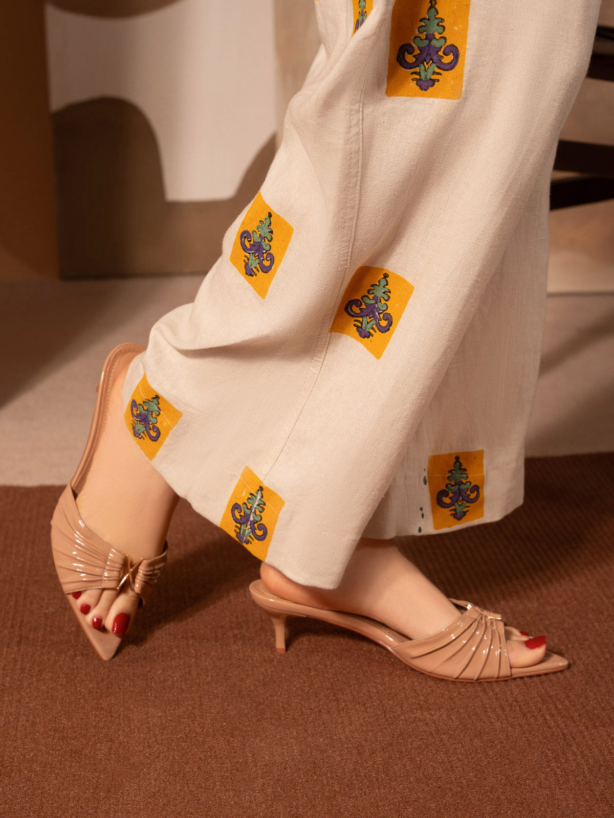 The point-toe design adds a touch of refinement, while the low heel ensures all-day comfort. Easy to slip on, these sandals are perfect for work, casual outings, or evening gatherings. Designed to pair effortlessly with dresses, skirts, or trousers.