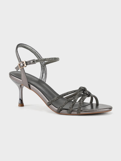 Make a statement with glittery decorated pencil heel sandals that combine intricate detailing and a chic open-toe design, ideal for weddings and galas.