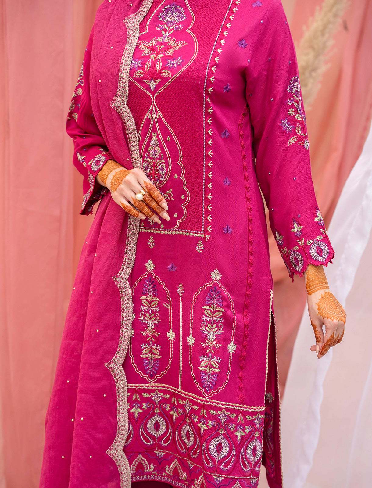 This elegant shirt boasts a rich artistic composition, with layers of intricate embroidery in a beautiful cloudy violet shade. The trendy silhouette adds a touch of modernity, while the captivating floral motifs on the front and sleeves elevate the shirt to a new level of sophistication. It's the perfect choice for anyone looking to make a stylish statement this season.