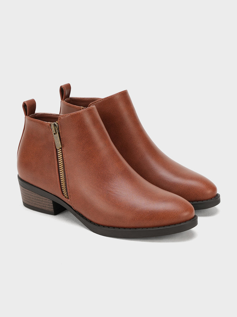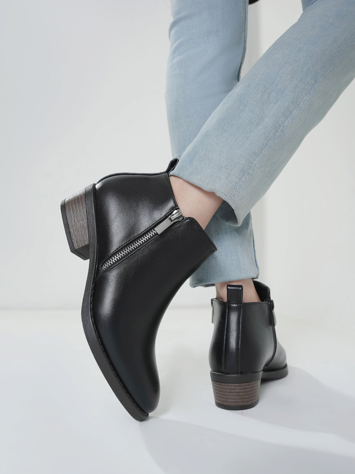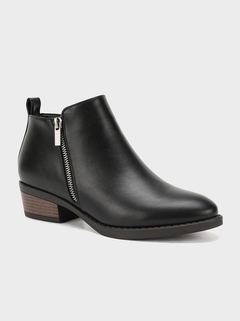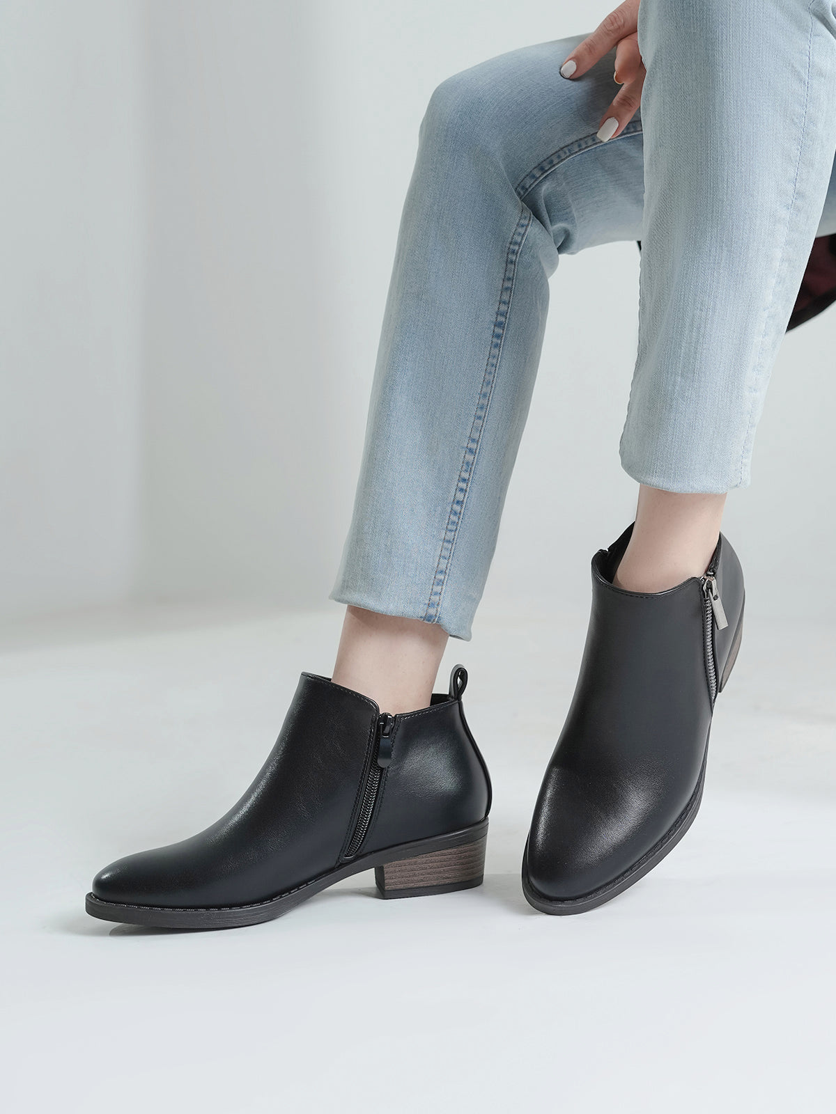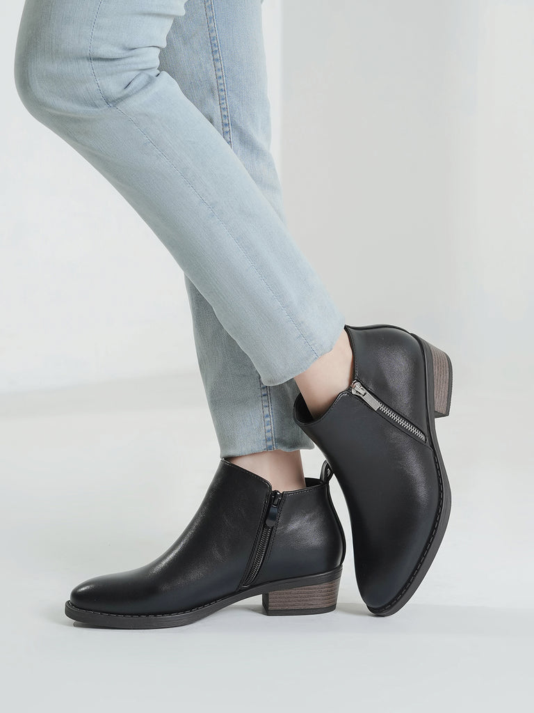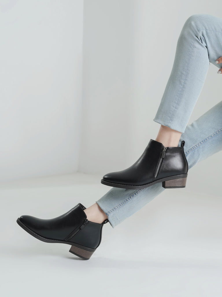 Upgrade your everyday style with these women’s low ankle boots. Designed with a convenient side zipper, they offer easy on-and-off wear while keeping your look sleek and fashionable. The low block heel adds subtle height without sacrificing comfort.