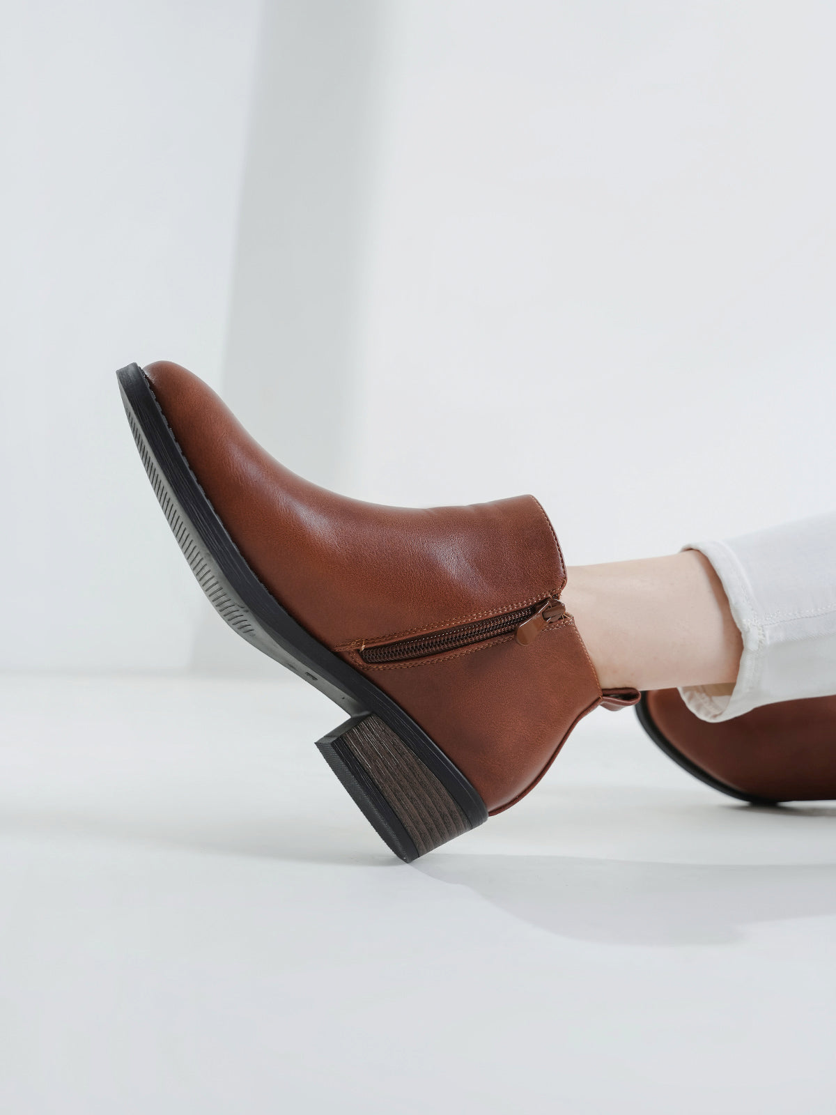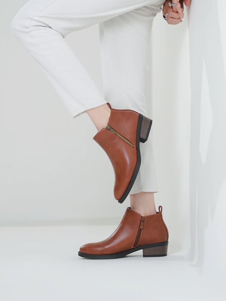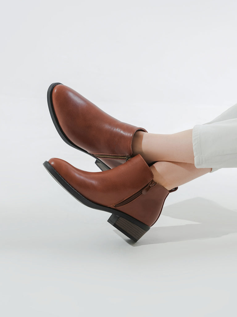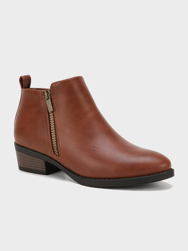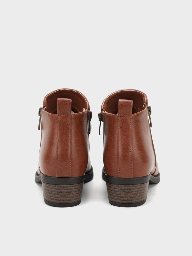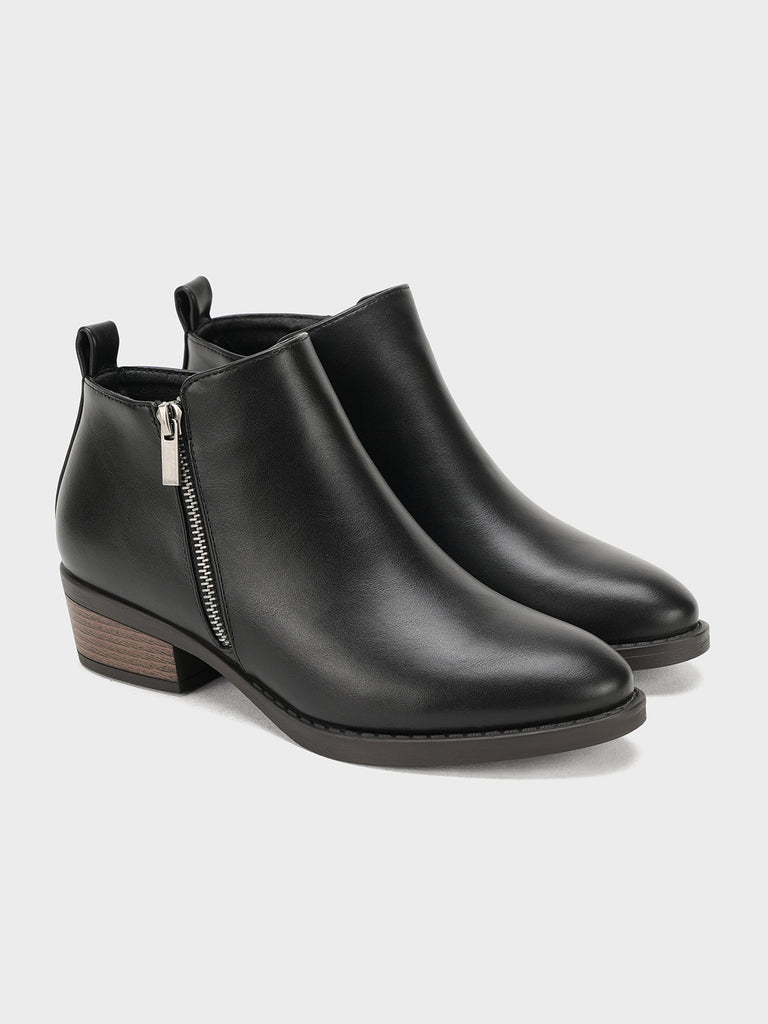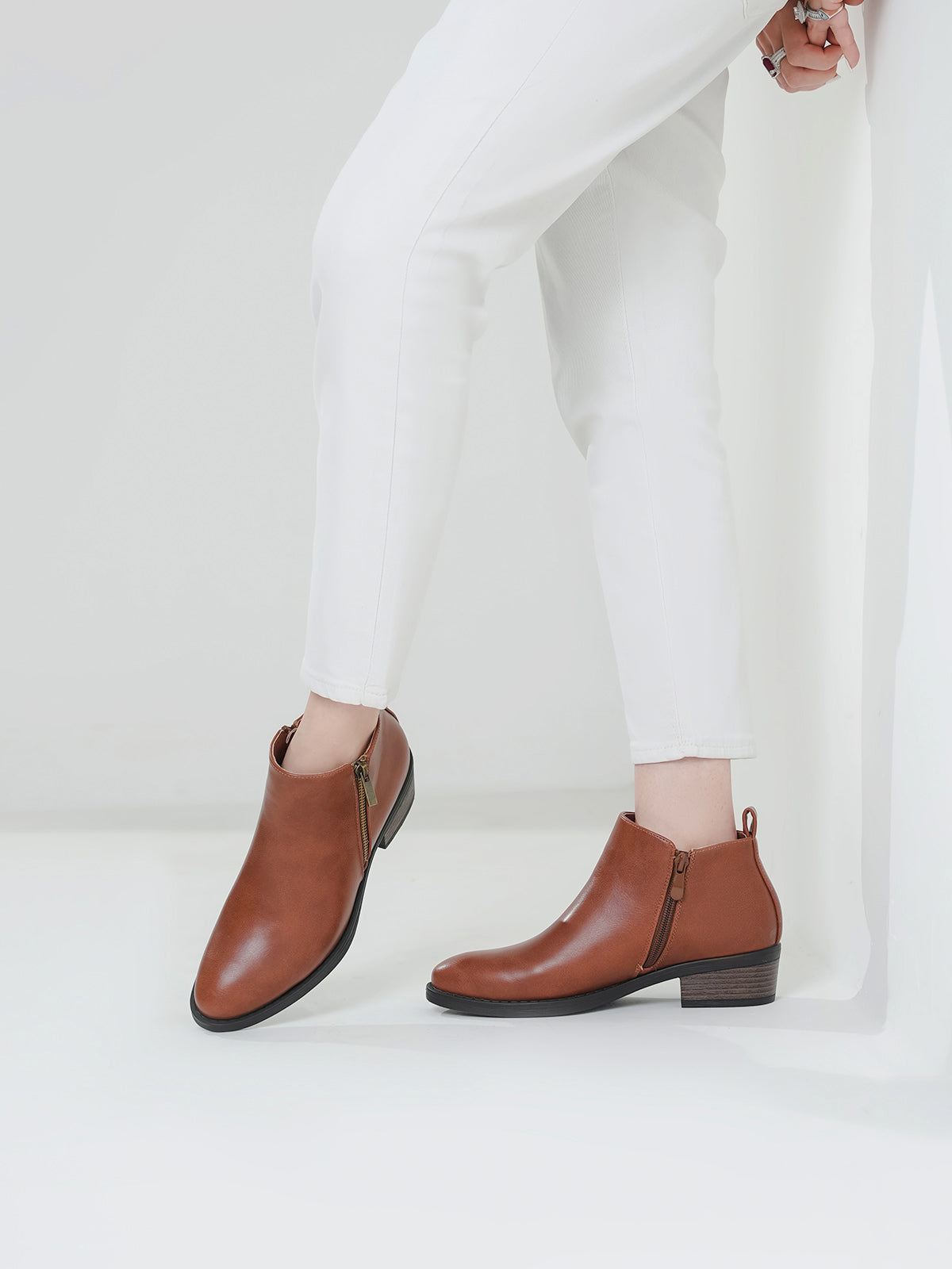 Upgrade your everyday style with these women’s low ankle boots. Designed with a convenient side zipper, they offer easy on-and-off wear while keeping your look sleek and fashionable. The low block heel adds subtle height without sacrificing comfort.