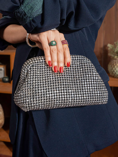 Make a sparkling statement with this unique women’s evening fancy clutch, adorned with dazzling diamond-like stones. Perfect for parties, weddings, or special occasions, it combines elegance and glamour while keeping your essentials secure. Compact yet stylish.