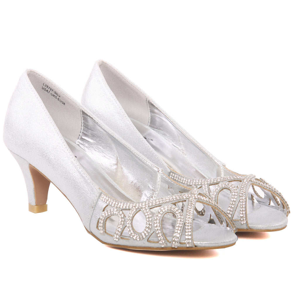 Keep it classic in this sophisticated peep-toes which features a diamante pattern with perforated style vamp. Kitten heels and comfortable inner sole makes it an essential if you are looking for something classy. Pair it with evening gown or wedding dress to complete your look.