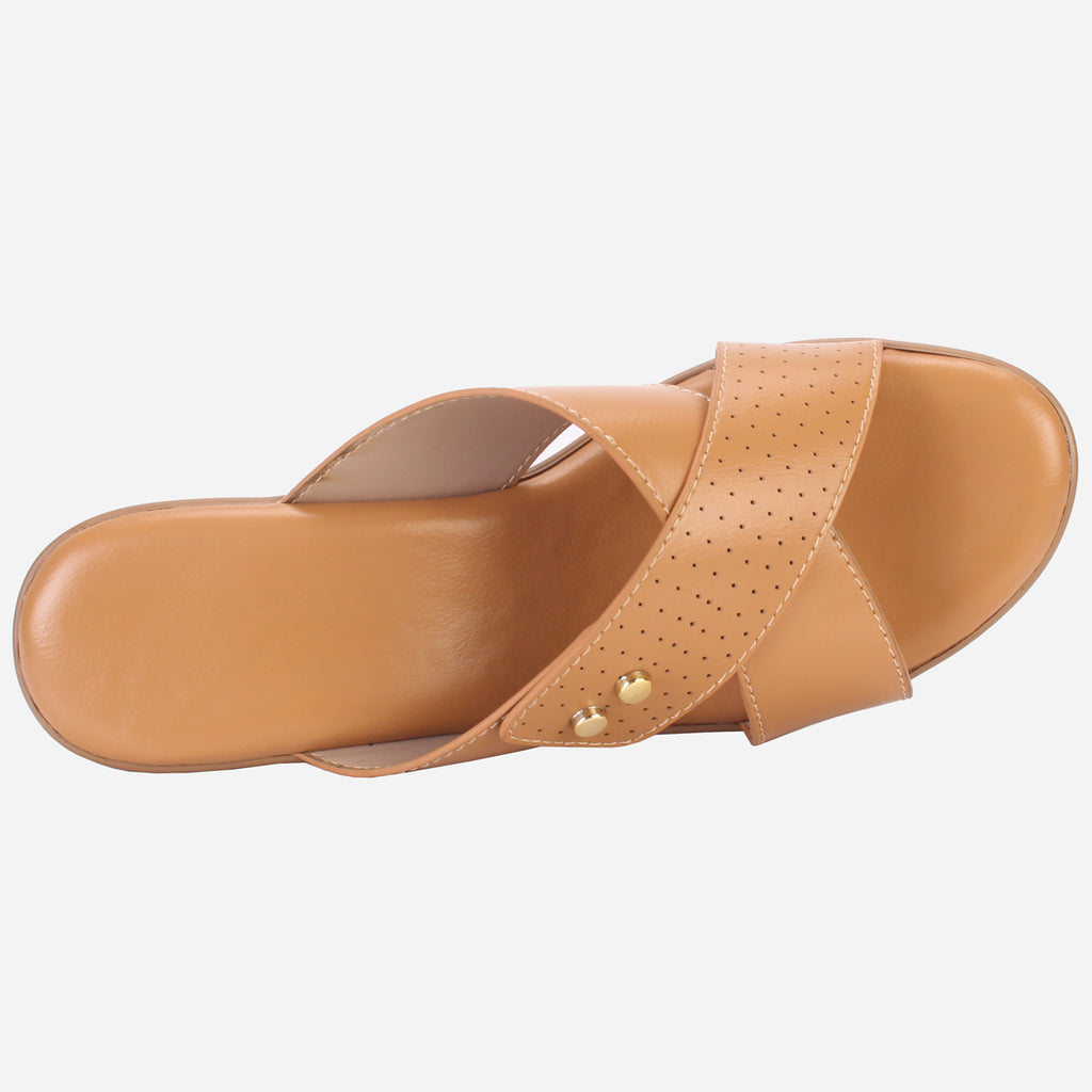 Introducing our charming slip-on sandals, crafted with a brand new, flexible outsole for maximum comfort. The lightweight design boasts delightful accents, including a beautiful crossover style with intricate detailing and a perforated strap. The open toe construction allows for effortless slip-on wear, while the mid-low wedge heel adds a touch of elegance to any outfit. These sandals are not only adorable but also practical and versatile, perfect for any occasion.