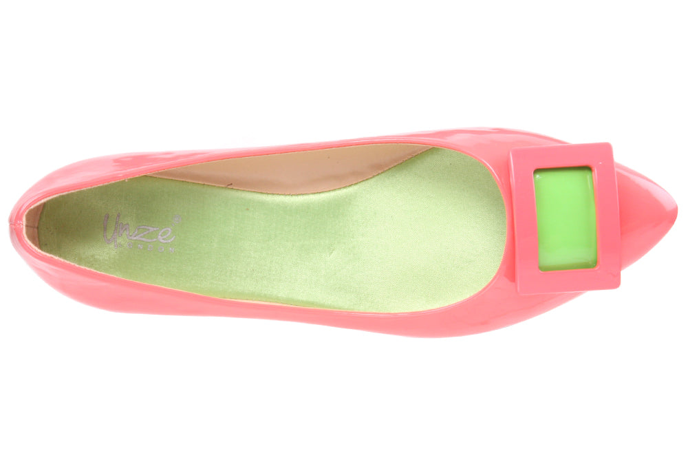 Your charming outfit needs these contemporary stylish ballet flat shoes. Rectangular shaped ornament adorned its upper with combination colored. Style No: L24533 Colour: CORAL