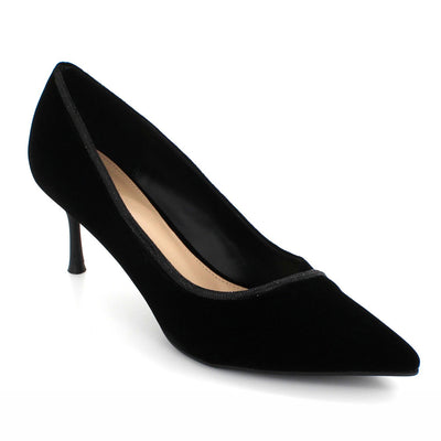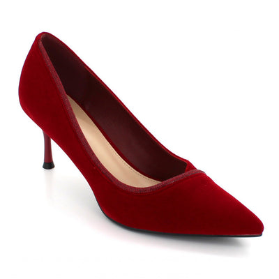 Add some sparkle to every step with these stylish and decorated evening court shoes. These suede courts have pointy toe designed upper with easy slip on construction. All over beads and crystal decoration around the edges makes it glamorous. While stiletto heel adds some glamour to them.